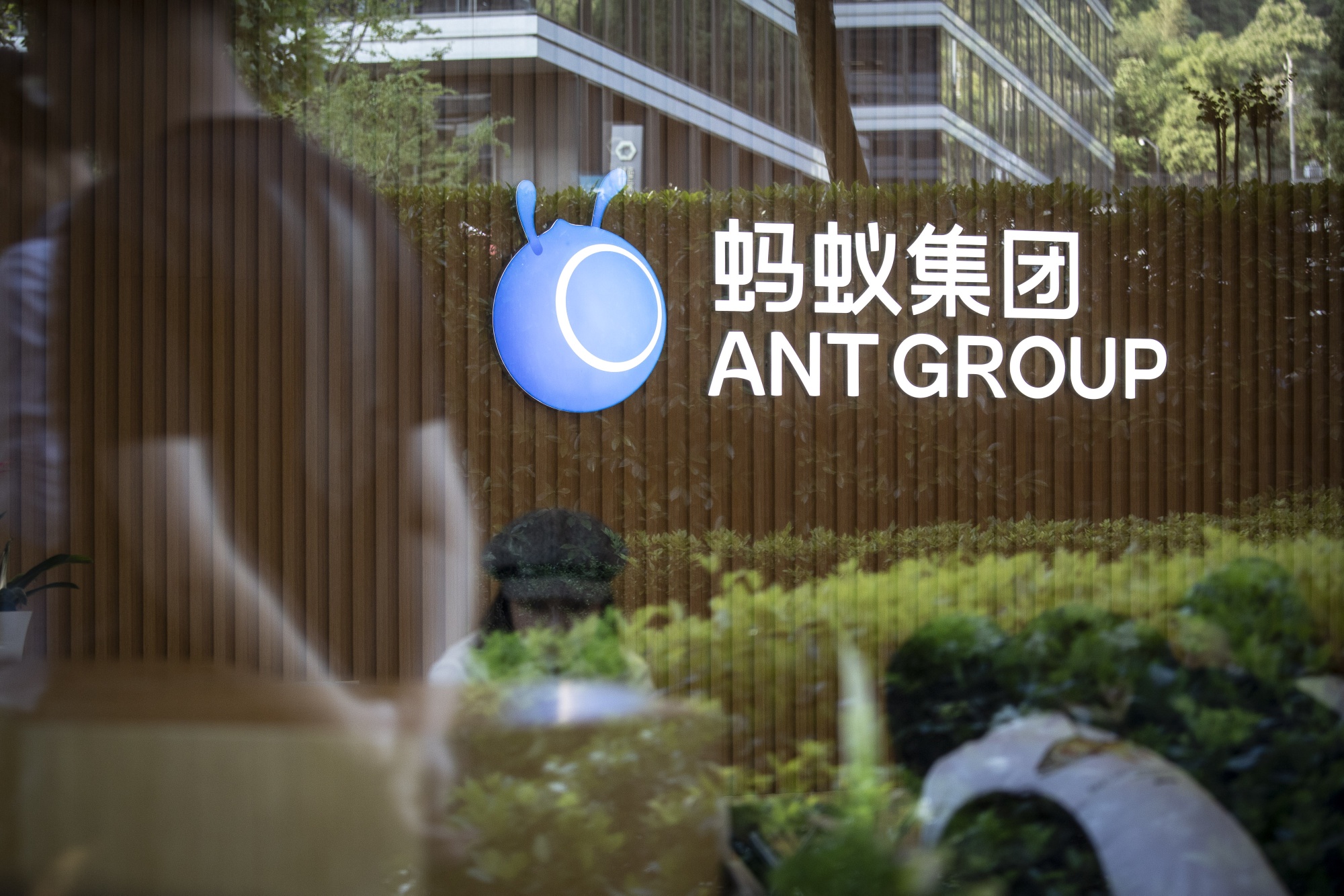 蚂蚁集团公司标志位于中国杭州总部内。
