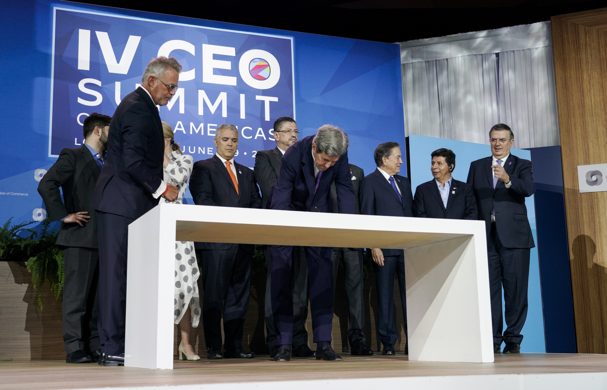 克里在美洲峰会期间签署协议。摄影师:凯尔·格里洛特/彭博社