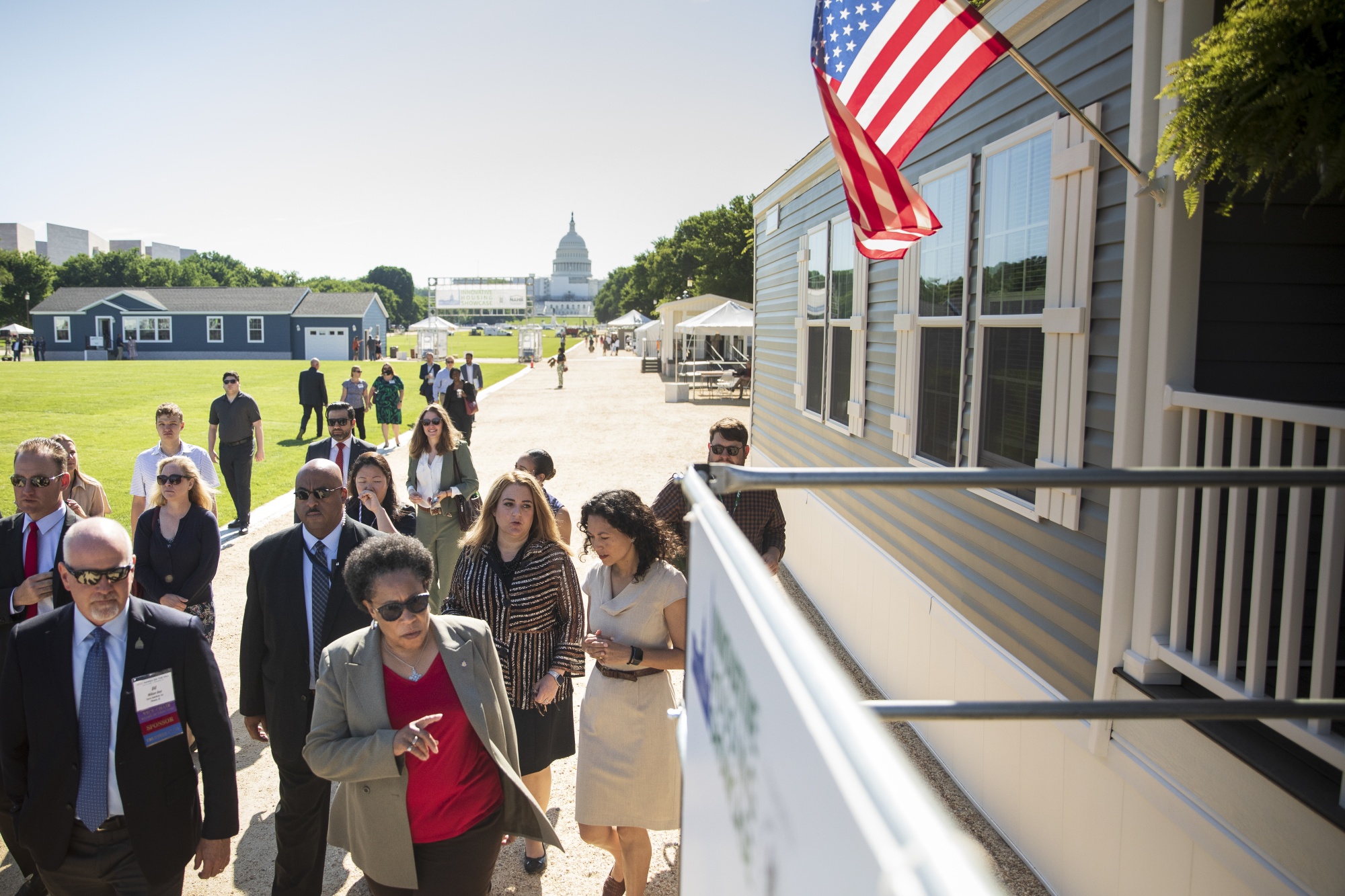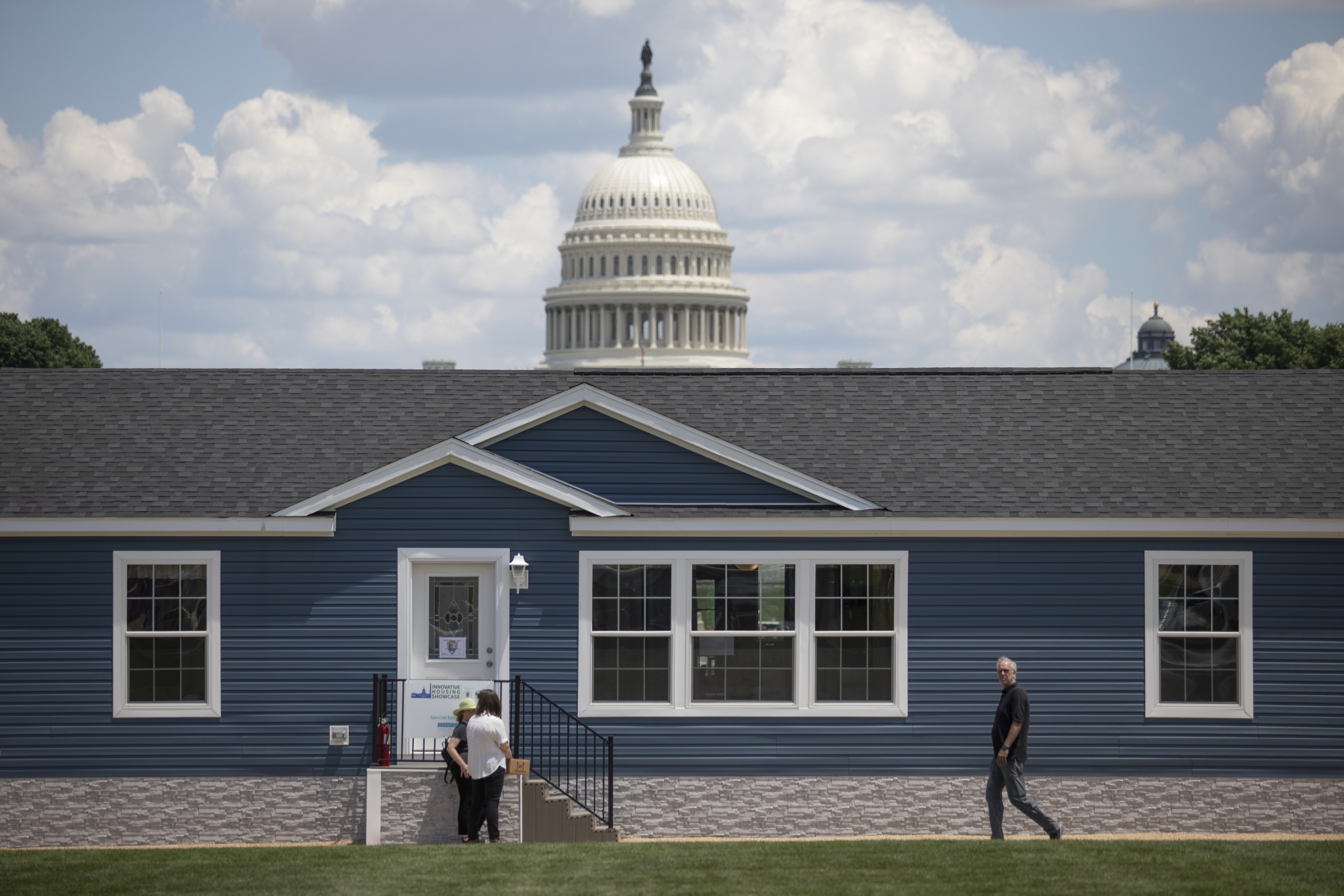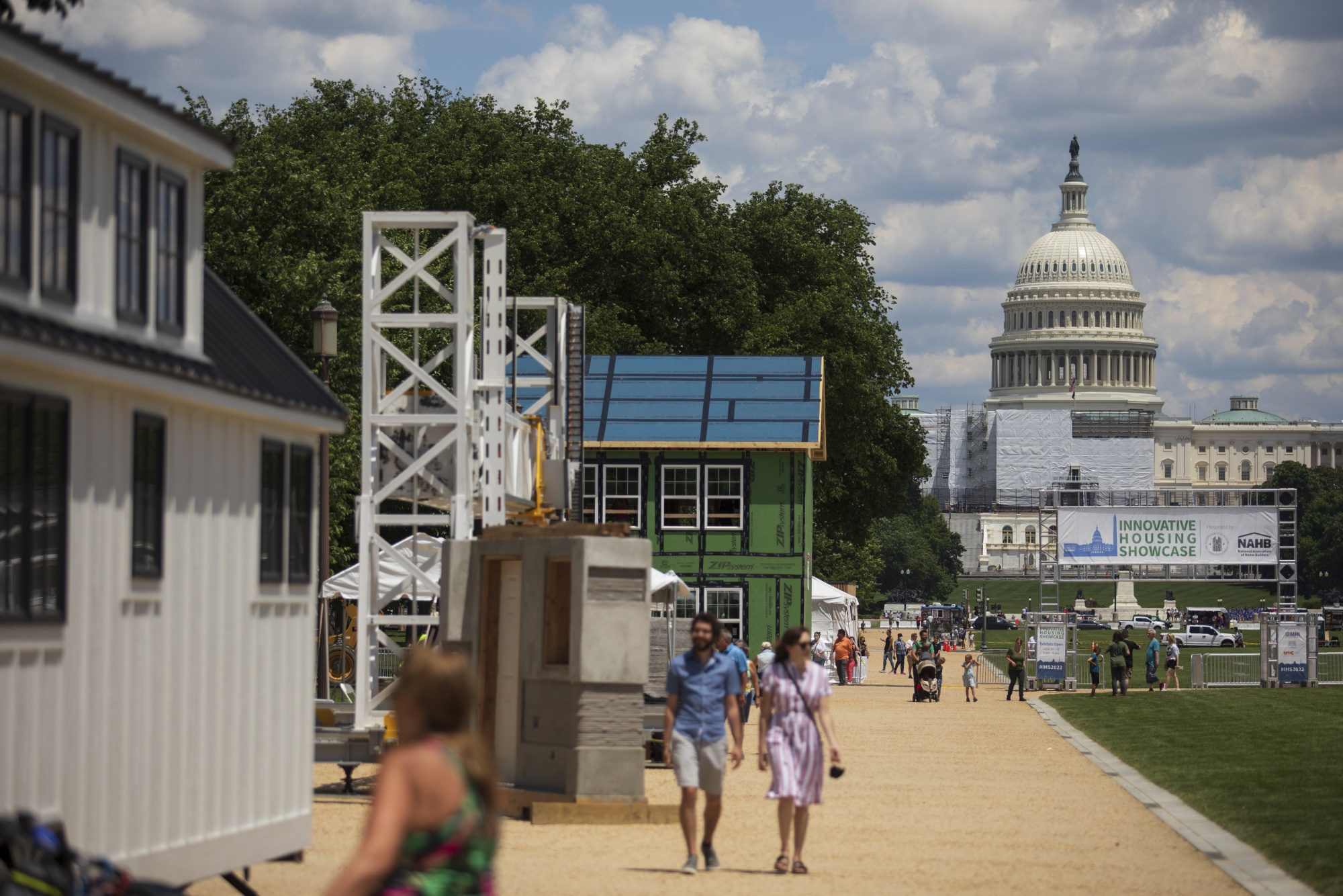 在华盛顿特区的国家广场上展示的一层楼样板房,于6月10日。