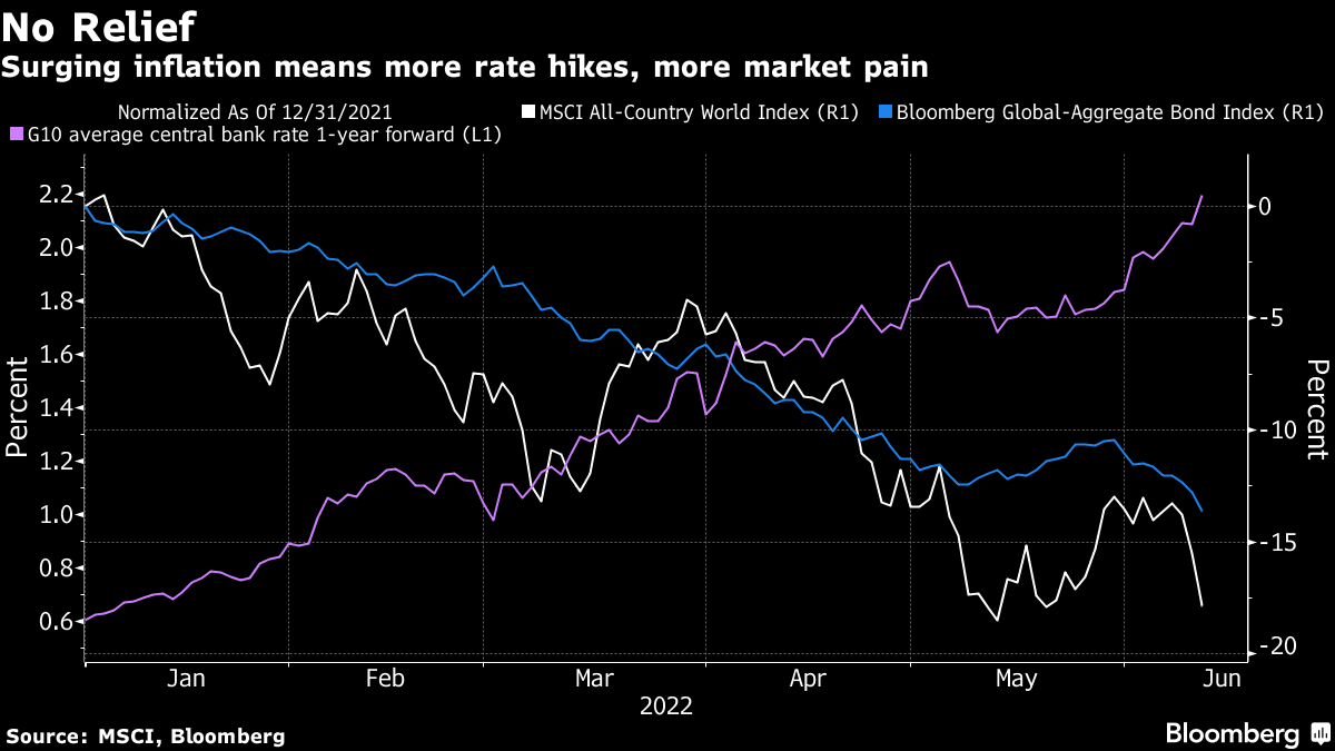 这也表明,资产价格的严重通缩可能远非短暂。尽管投资者习惯性地相信反弹即将到来,但股票和债券持续下跌。在通胀实际达到峰值并明显开始降温之前,资产要实现任何可持续的反弹将是困难的。