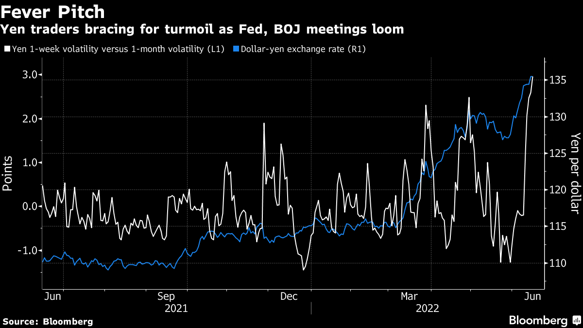 日元在突破每美元135日元后可能会走得更远,因为交易员正为美国和日本央行会议做准备。焦点主要集中在周三的美联储会议上,以及可能的三个季度加息。但日本央行坚持维持超宽松政策,而其他央行则在收紧政策,这也成为一个重要问题。