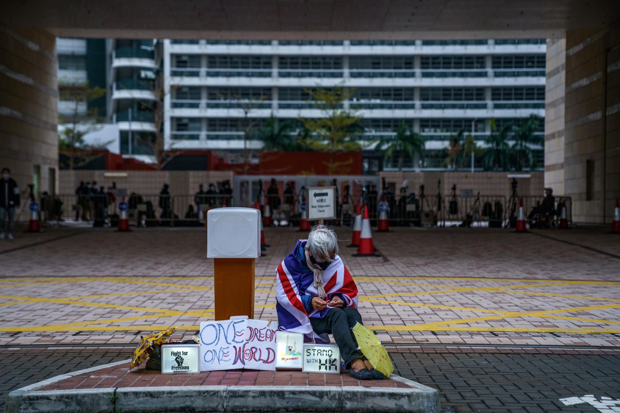 一名身着英国国旗的亲民主倡导者在2021年违反香港国家安全法被控的活动人士的法庭听证会外。摄影师:Lam Yik/Bloomberg在迪拜繁华金融中心核心的低调二楼办公室里,为 Moelis & Co.工作的银行家们比以往任何时候都更忙碌 — 以至于公司不得不拆除墙壁为其扩张计划增加办公桌。