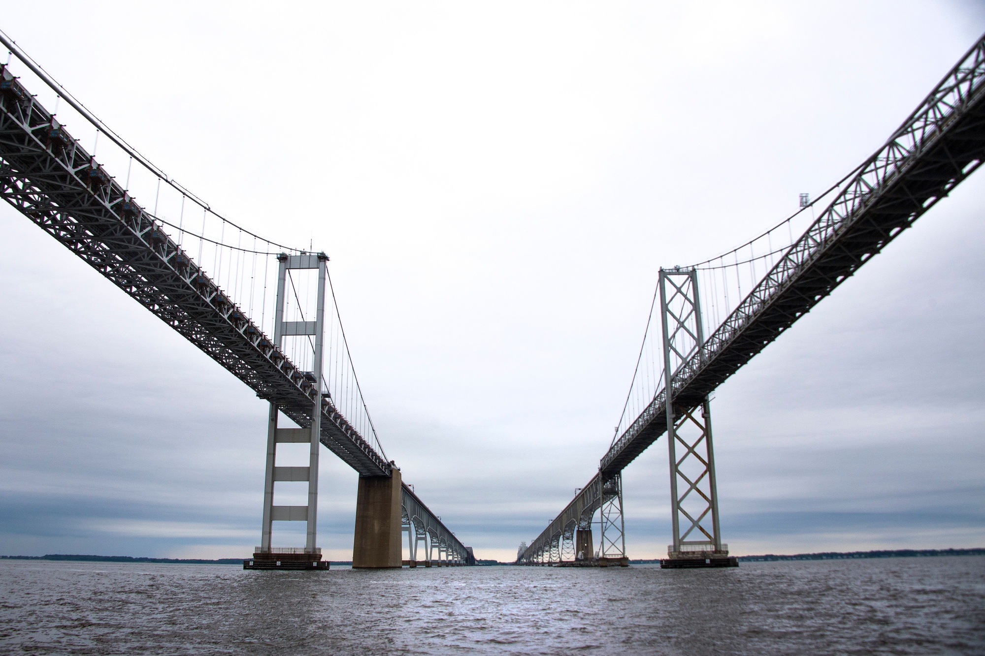 切萨皮克湾大桥的双跨,连接着马里兰州的西部和东部,将来可能会有第三座跨海大桥加入。