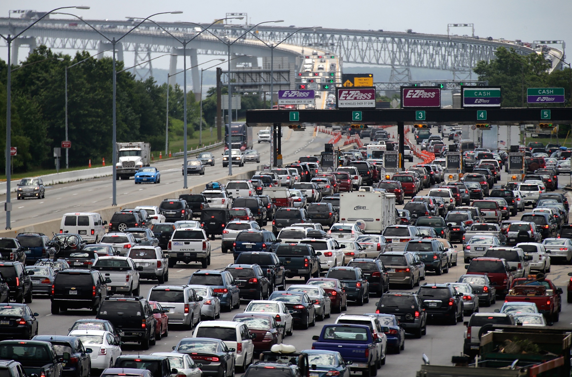 马里兰州夏季的典型场景:2013年7月3日,车辆在等待穿越切萨皮克湾大桥。摄影师:Win McNamee/Getty Images在未来的二十年里,马里兰交通运输管理局预计,工作日(从2017年的67,000次过桥增加到2040年的84,000次)和夏季周末(从118,000次增加到135,000次)的交通量将增加23%,没有新的过桥方案。第一阶段报告还声称,修建新的跨海大桥将减少车辆排放,相比现状,通过缓解拥堵和减少怠速驾驶员来实现。