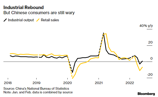 中国周三的数据显示,五月份经济在艰难前行,工业生产出乎意料地继续增长,而房地产市场和消费则显示进一步恶化。