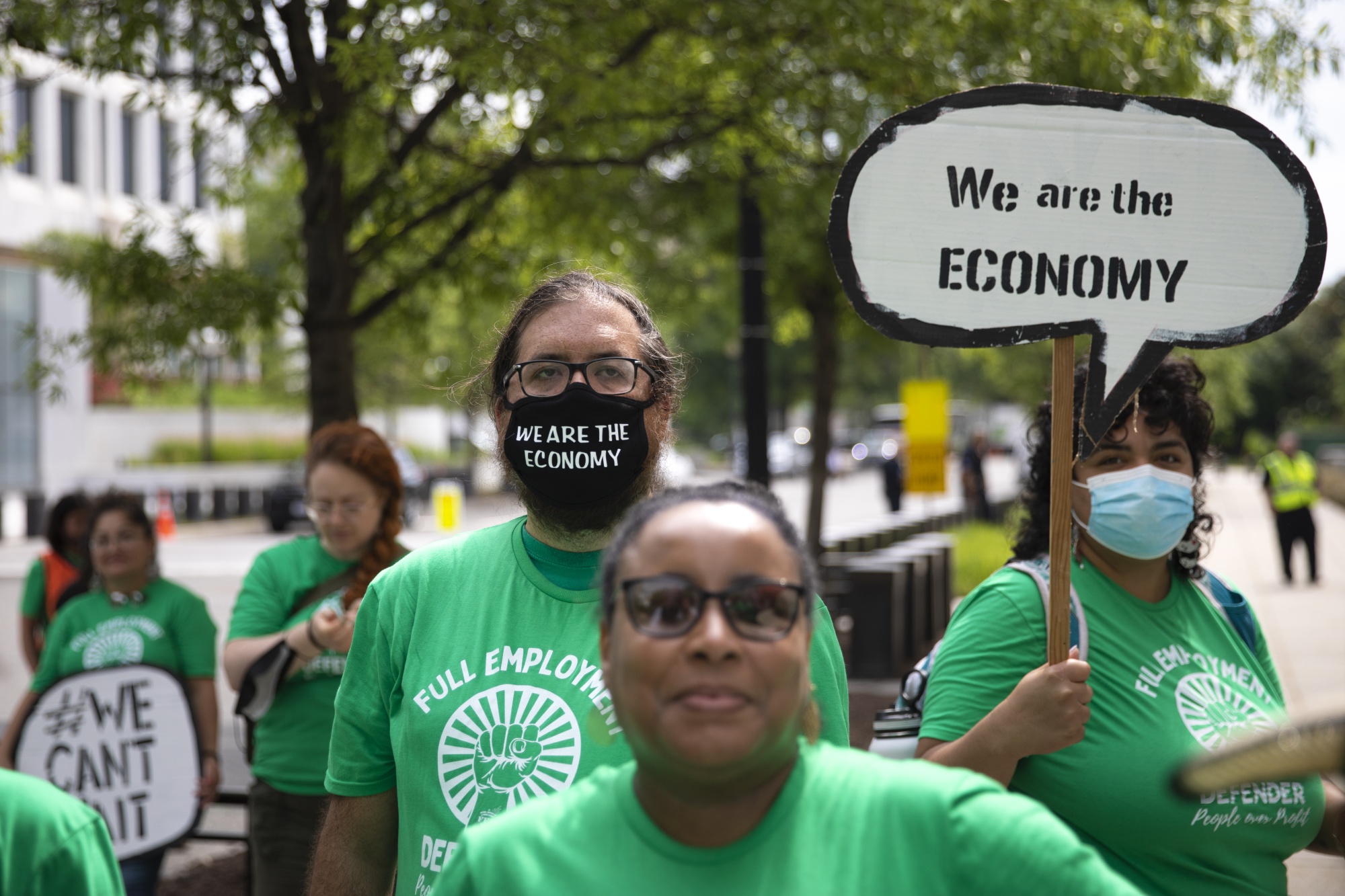 昨天在华盛顿示威的抗议者敦促美联储关注充分就业而不是通货膨胀。摄影师:汤姆·布伦纳/彭博社点击 这里 关注彭博政治在Facebook上,并与他人分享此新闻简报。他们可以在 这里 注册。