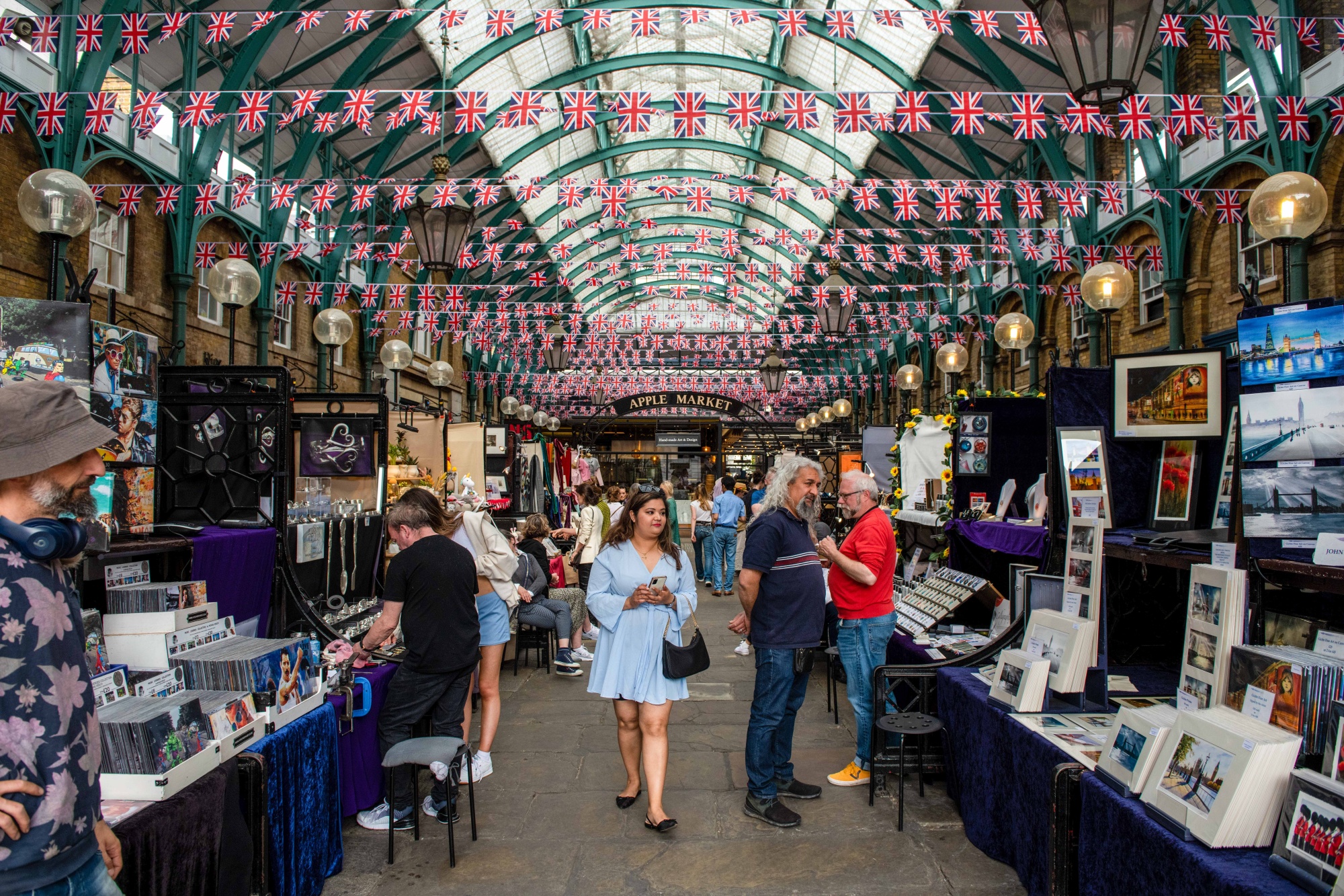 伦敦的科芬园市场的购物者。
