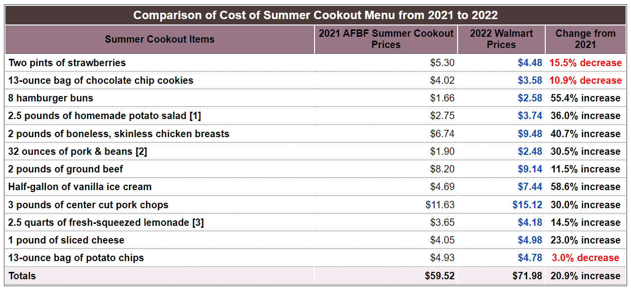 美国人准备为7月4日的野餐支付多出20.9%的费用。