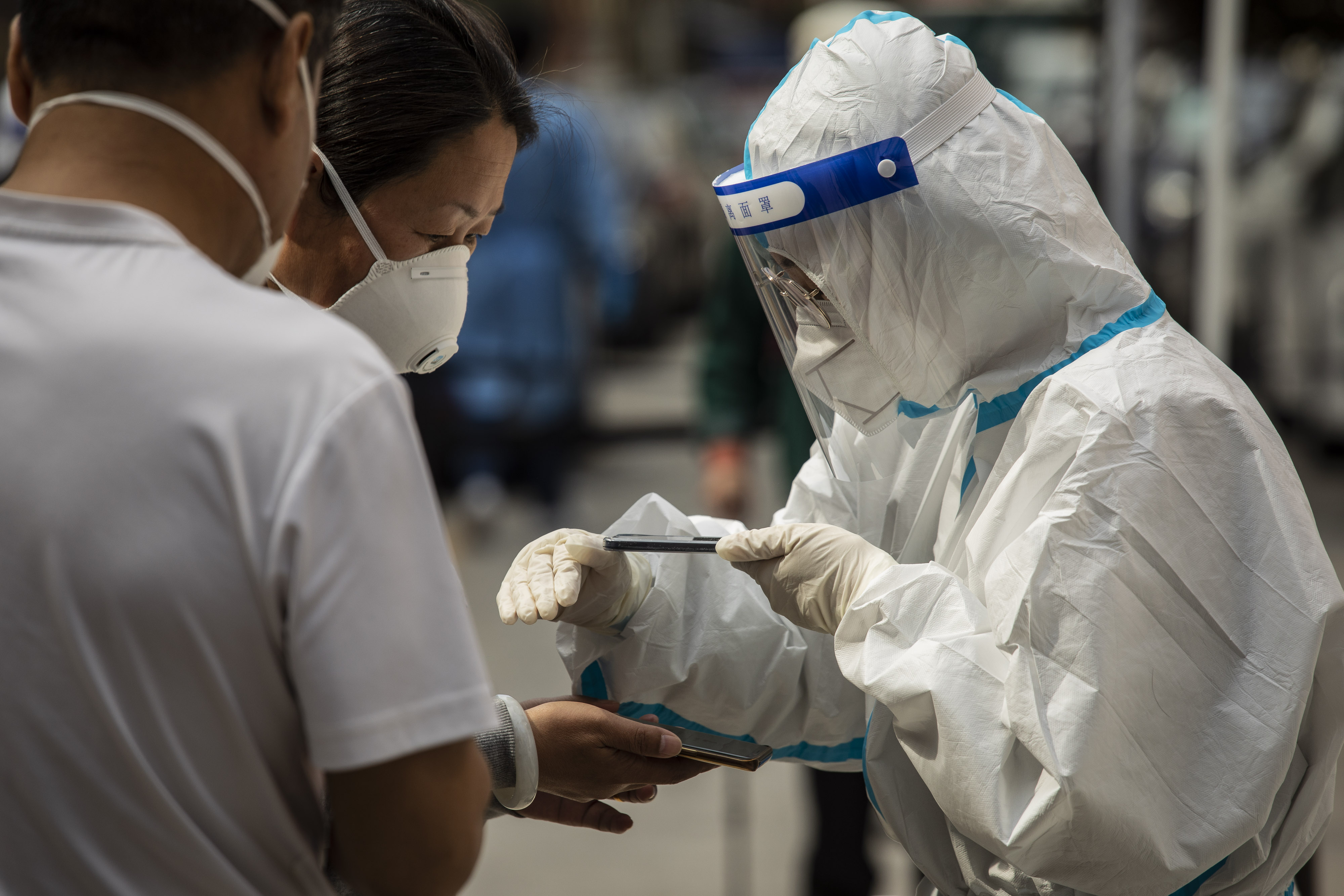 居民在四月份在上海展示他们的健康码。中国使用三色健康码系统来跟踪可能被新冠病毒感染的人。红色禁止人们进入某些地方或乘坐公共交通工具,而绿色则允许通行。用户必须在所有公共场所扫描码。根据官方数据,河南城市本周早些时候没有风险区域。