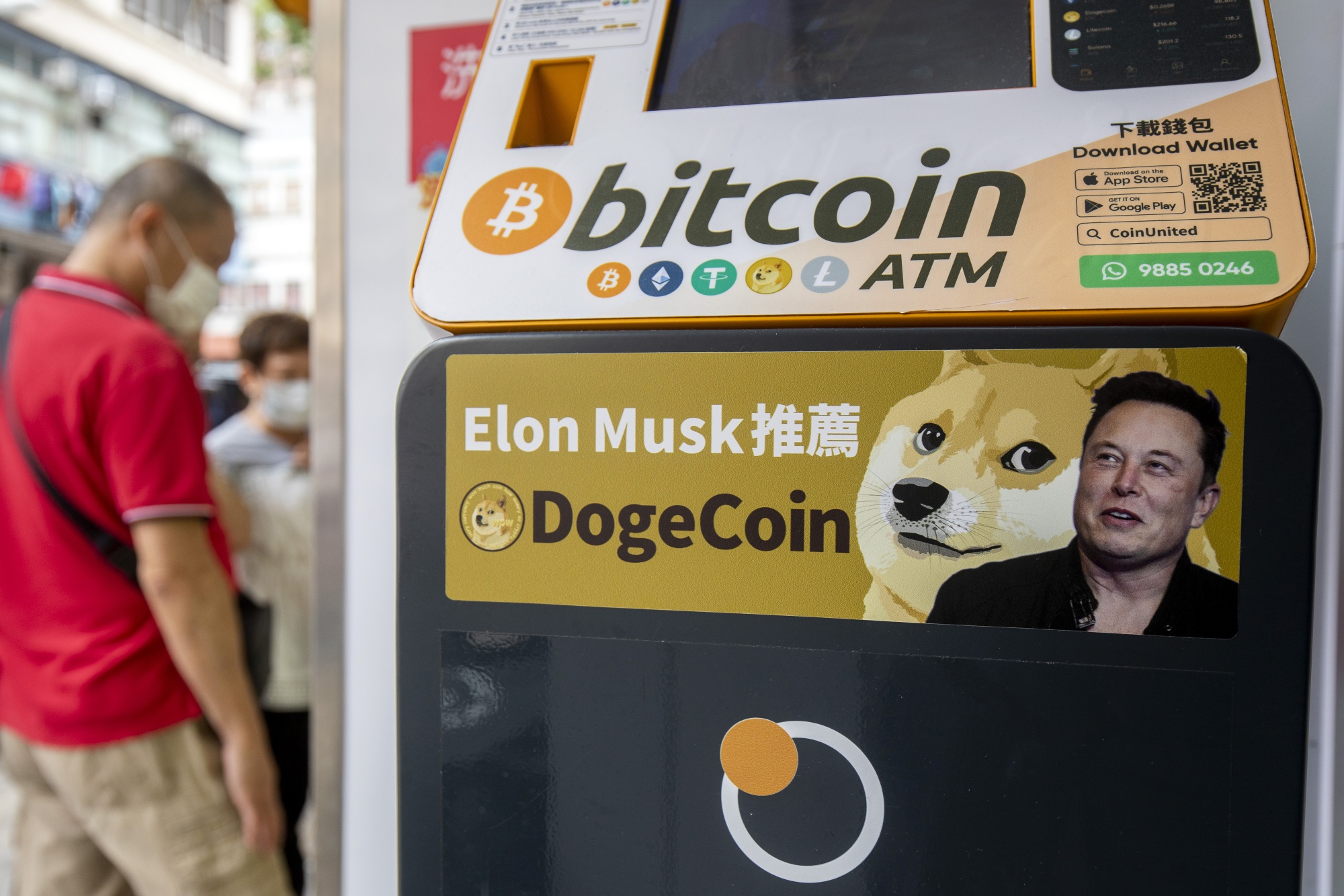 埃隆·马斯克和狗狗币出现在香港一家洗衣店内的加密货币ATM机上。摄影师:保罗·杨/Bloomberg例如,SpaceX和特斯拉确实购买了一些比特币,“但这只是我们总现金和准现金资产的一小部分,”马斯克说。“我也买了一些狗狗币,特斯拉接受狗狗币购买一些商品,SpaceX也会这样做。”
