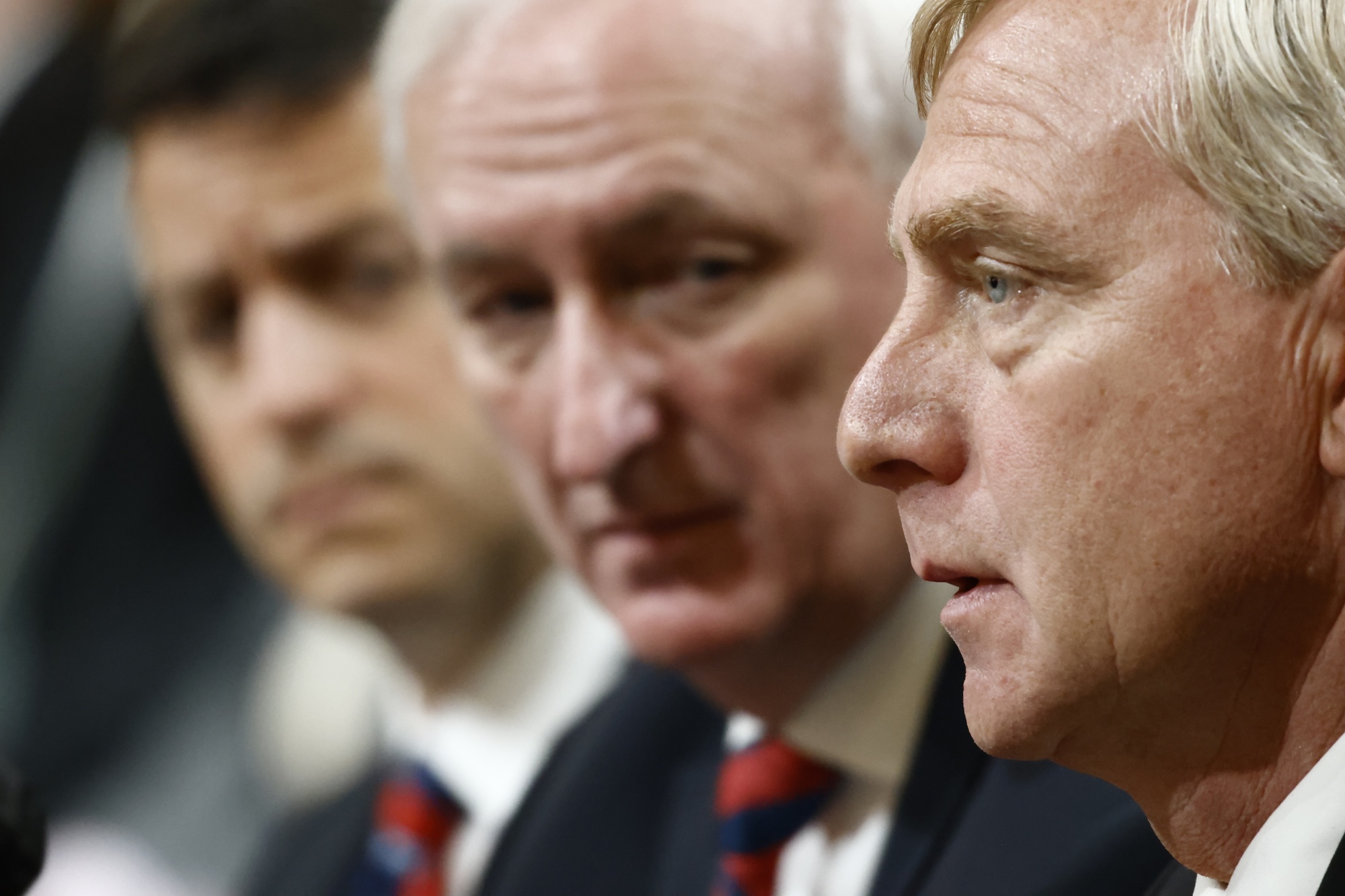 理查德·多诺霍,前代理美国副检察长,在6月23日的国会特别委员会听证会上作证,前代理美国司法部长杰弗里·罗森在中间聆听。摄影师:塞缪尔·科伦/彭博社在他的证词中,前特朗普政府代理副司法部长理查德·多诺霍回忆起他在1月6日暴动前与特朗普的会面。多诺霍表示,特朗普对司法部未帮助他处理选举舞弊指控感到“焦躁”,最终他问道“为什么你们不把机器拿走呢?” 多诺霍还表示,特朗普还告诉司法部官员说选举“腐败,其他事情交给我和共和党议员”,多诺霍作证。特朗普白宫法律顾问帕特·西波洛尼支持司法部拒绝介入,多诺霍表示,考虑到克拉克的信可能引发“宪法危机”。当被问及西波洛尼对现在臭名昭著的信的反应时,多诺霍称其为“一纸杀人自杀协议。”