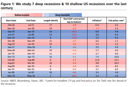 有趣的是,传统上市场直到大规模衰退前才开始抛售。这表明这些衰退是由疫情等冲击事件引起的,这些事件影响了消费者、公司和银行的资产负债表,瑞银称。