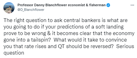 彭博经济学家比尔·达德利,前纽约联邦储备银行行长,认为美国经济衰退在未来一年到18个月内是“不可避免的”。花旗银行的经济学家和德意志银行首席执行官克里斯蒂安·塞文认为全球经济衰退的机会为50%。