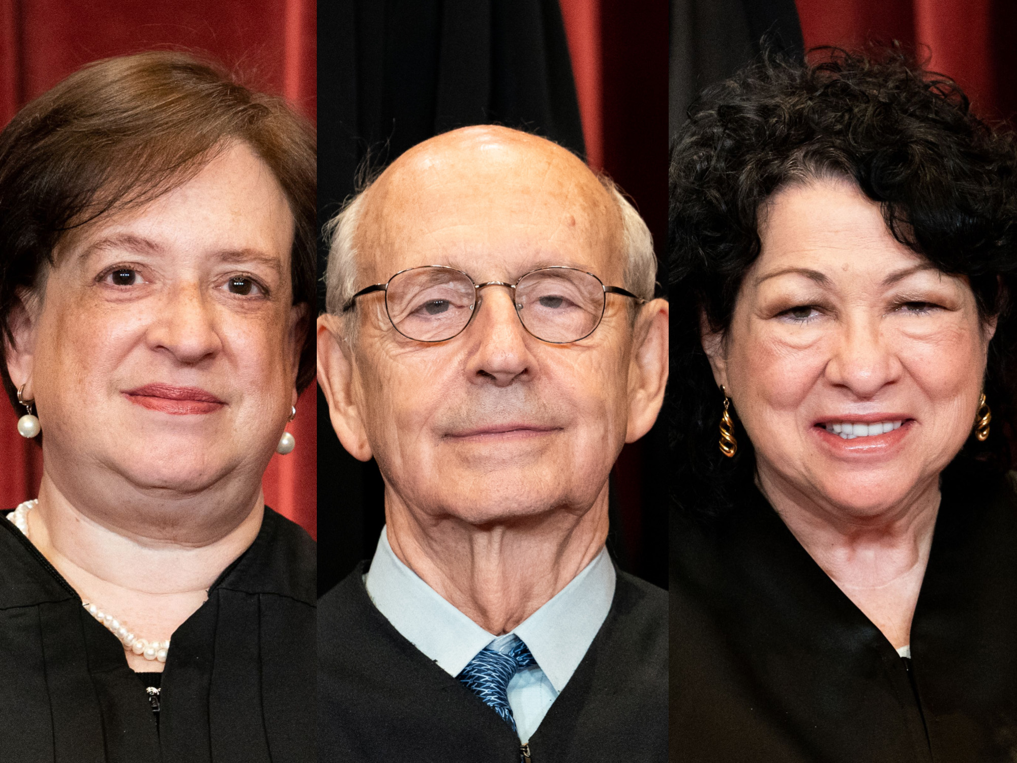 左起,联邦最高法院大法官埃琳娜·卡根、斯蒂芬·布雷耶和索尼娅·索托马约摄影师:Erin Schaff/Bloomberg
