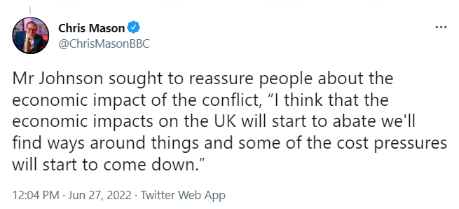 以他典型的乐观主义为特征,约翰逊今天告诉BBC的克里斯·梅森英国可能已经度过了最艰难的时期。