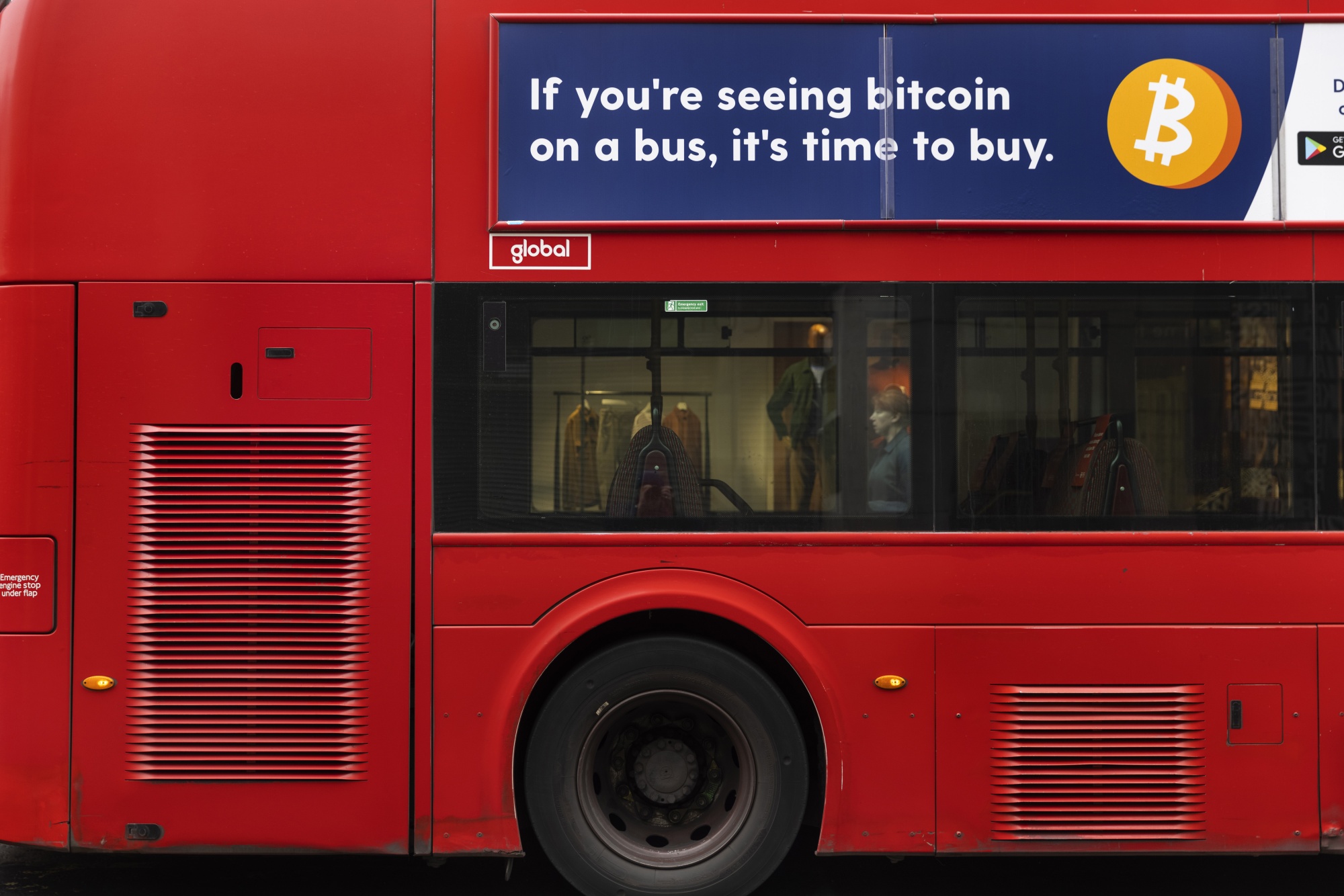 现在被禁止的一则众所周知的伦敦交通网络广告写道:“如果你在公交车上看到比特币,那就是买入的时机。”摄影师:Barry Lewis/In Pictures### 接下来会发生什么