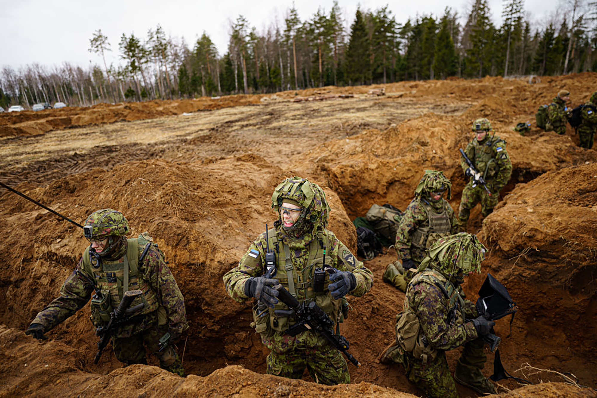 爱沙尼亚士兵在4月14日的北约演习中。摄影师:Ben Birchall/PA Images/Getty Images