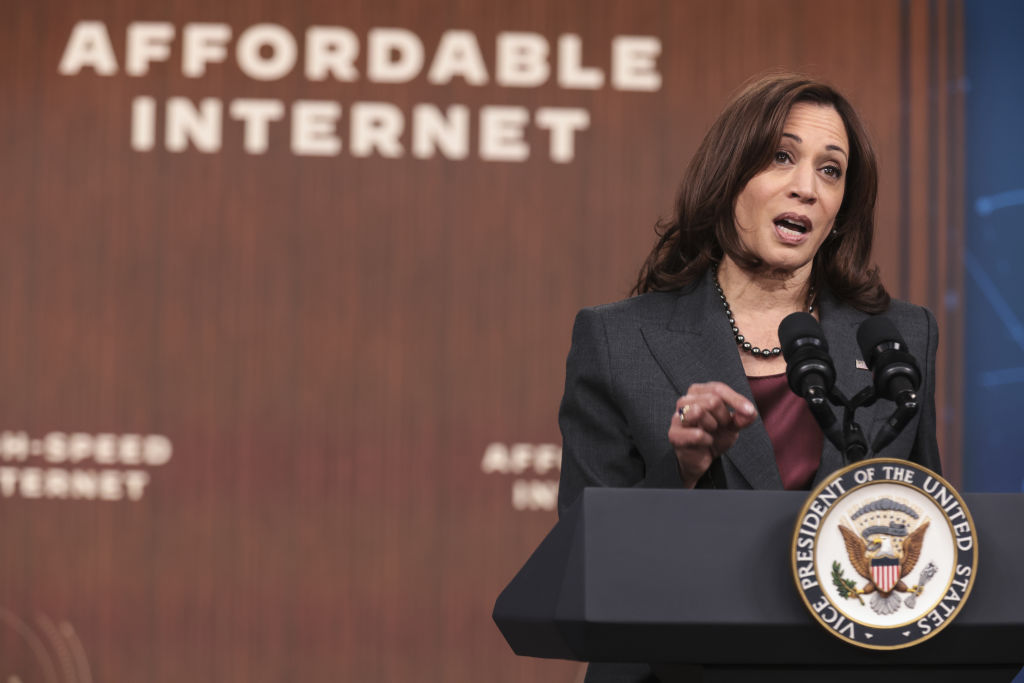 副总统卡玛拉·哈里斯于2022年2月14日讨论扩大高速互联网接入。
