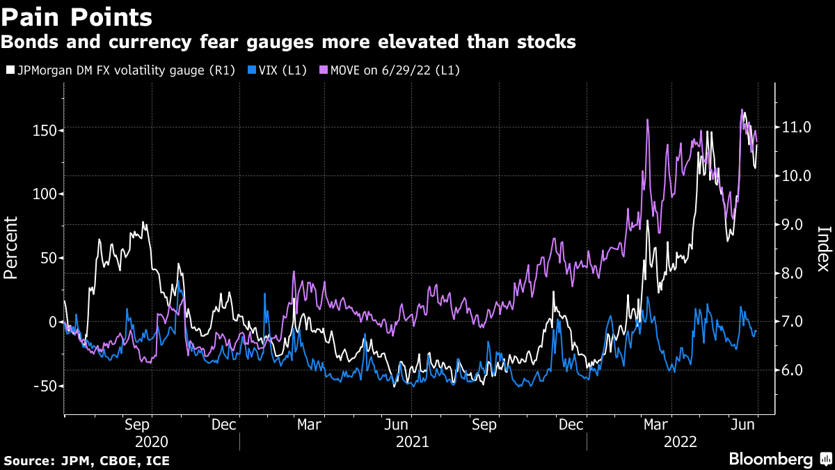 随着投资者一个悲惨的季度即将结束,未来几个月的前景并不会明朗多少。美联储主席杰罗姆·鲍威尔坚持需要加息来对抗通货膨胀,但人们越来越担心他和他的同行们在对经济能够避免衰退的信心上过于乐观。波动率指数显示了这个难题对市场有多么关键:加息多少,这将带来多大的痛苦,我们明年会不会最终陷入降息?货币和债券显示出比股票更多的恐惧,因为央行行动仍然是舞台中心。
