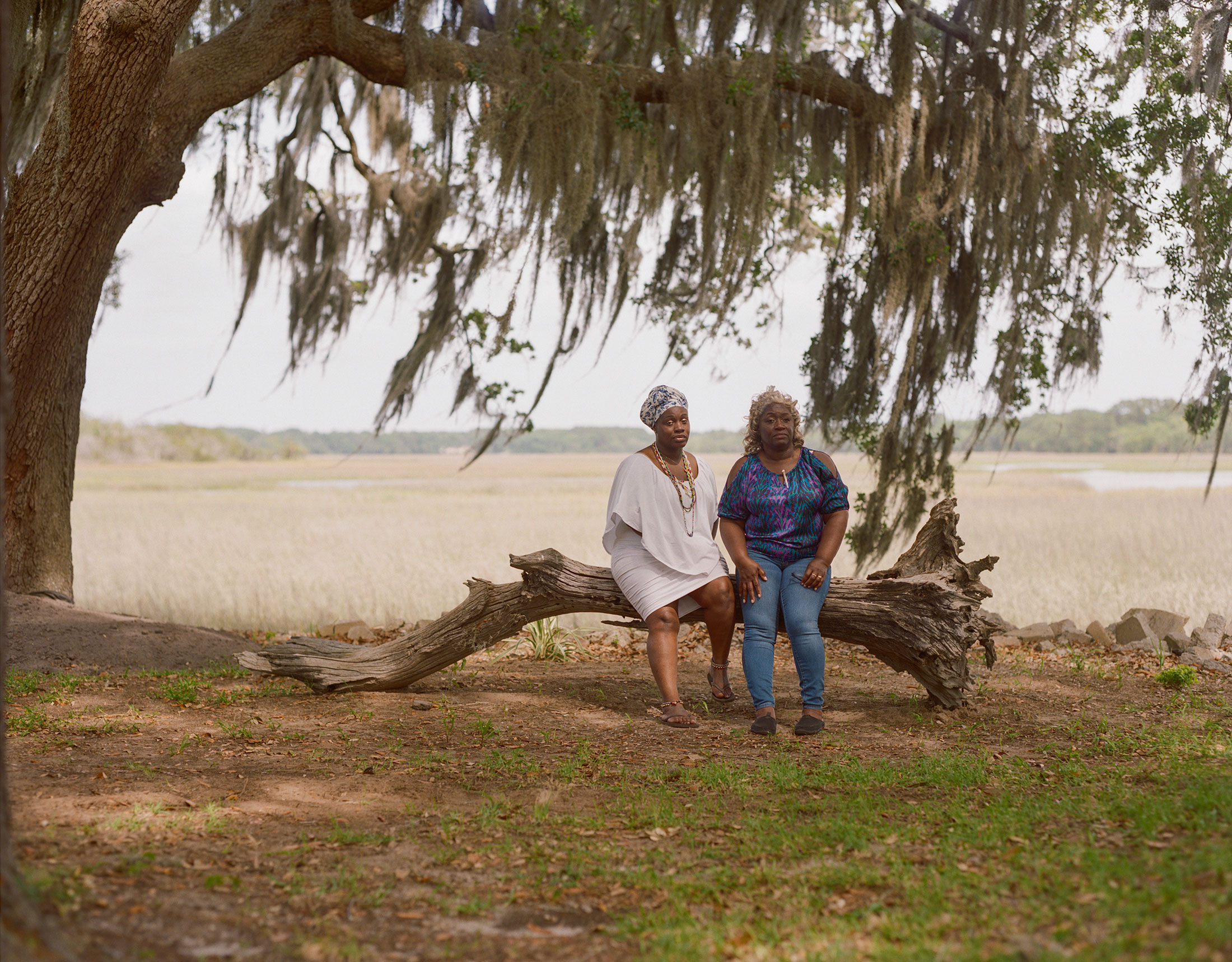 塔瓦娜·普罗姆普拉凯和德尔菲娜·吉拉德站在南卡罗来纳州圣海伦娜岛曾经属于他们家族的土地上。