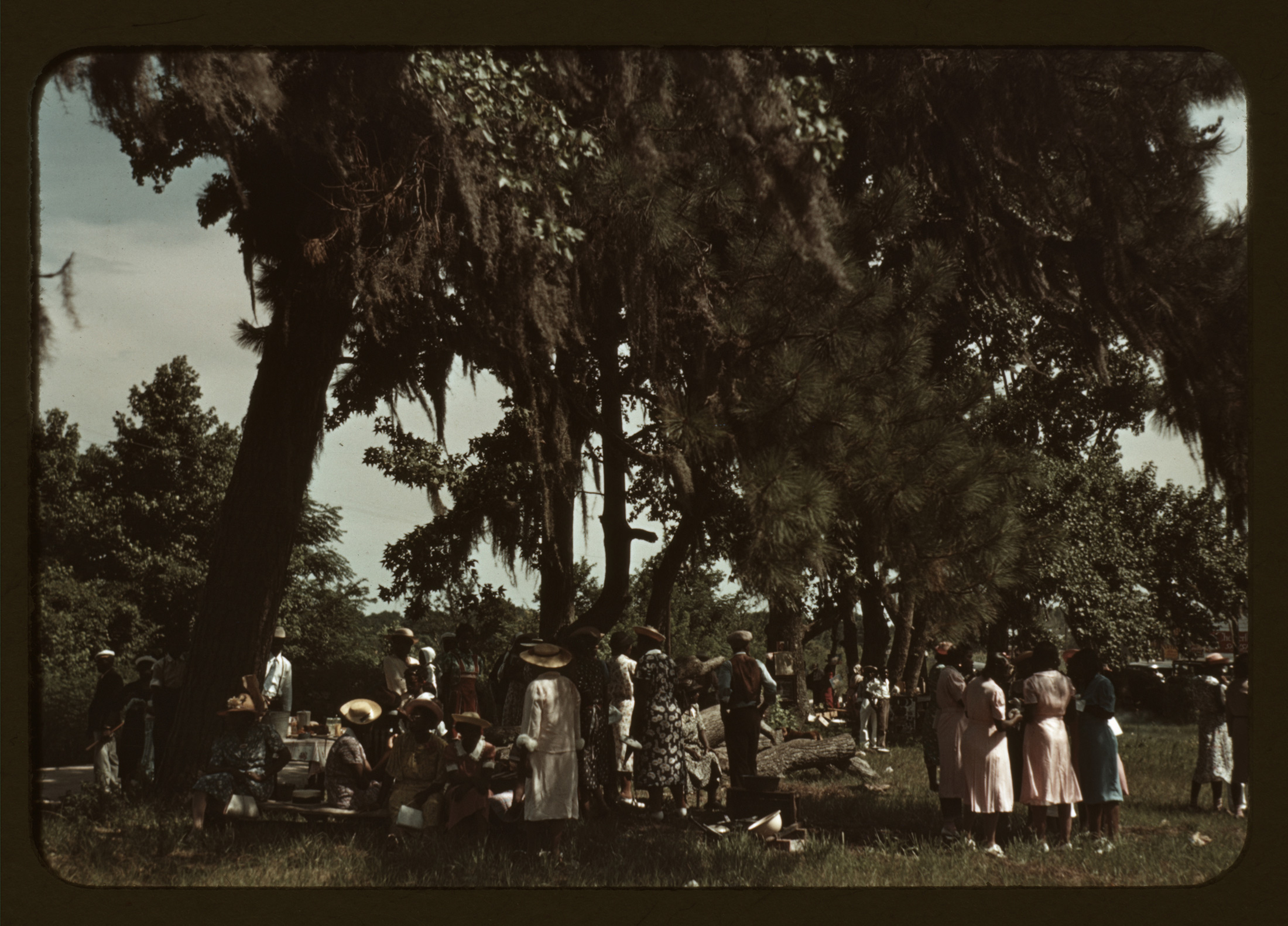 1939年七月四日庆祝活动中的社区。来源:玛丽昂·波斯特·沃尔科特/国会图书馆:近40年来,圣海伦娜岛和博福特县其他地区的税收销售都通过该县的治安官J.E.麦克蒂尔进行。1926年,22岁的麦克蒂尔被任命填补他已故父亲的职位,这位白人一直是这个以黑人为主的县的最高执法官,直到1962年才被选下。他以使用自己版本的非洲巫术或巫术来控制该岛的黑人人口而自豪,大胆地与圣海伦娜岛的黑人巫医竞争编造咒语和法术。部分原因是因为这个,他从不携带枪支。后来他在圣海伦娜岛从事房地产开发,并写了一本关于他的魔法行业的书:作为低地乡村巫医五十年。