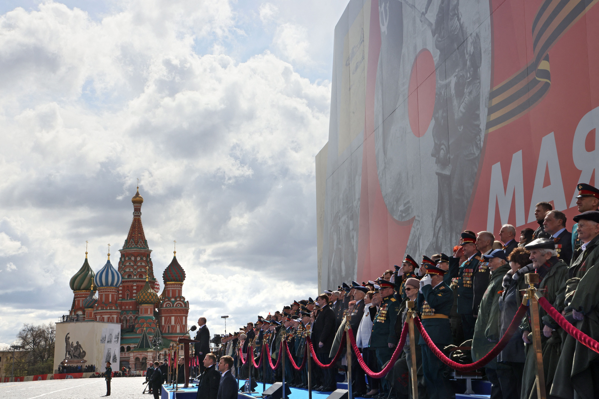 俄罗斯总统弗拉基米尔·普京在5月9日红场胜利日阅兵式上发表讲话。