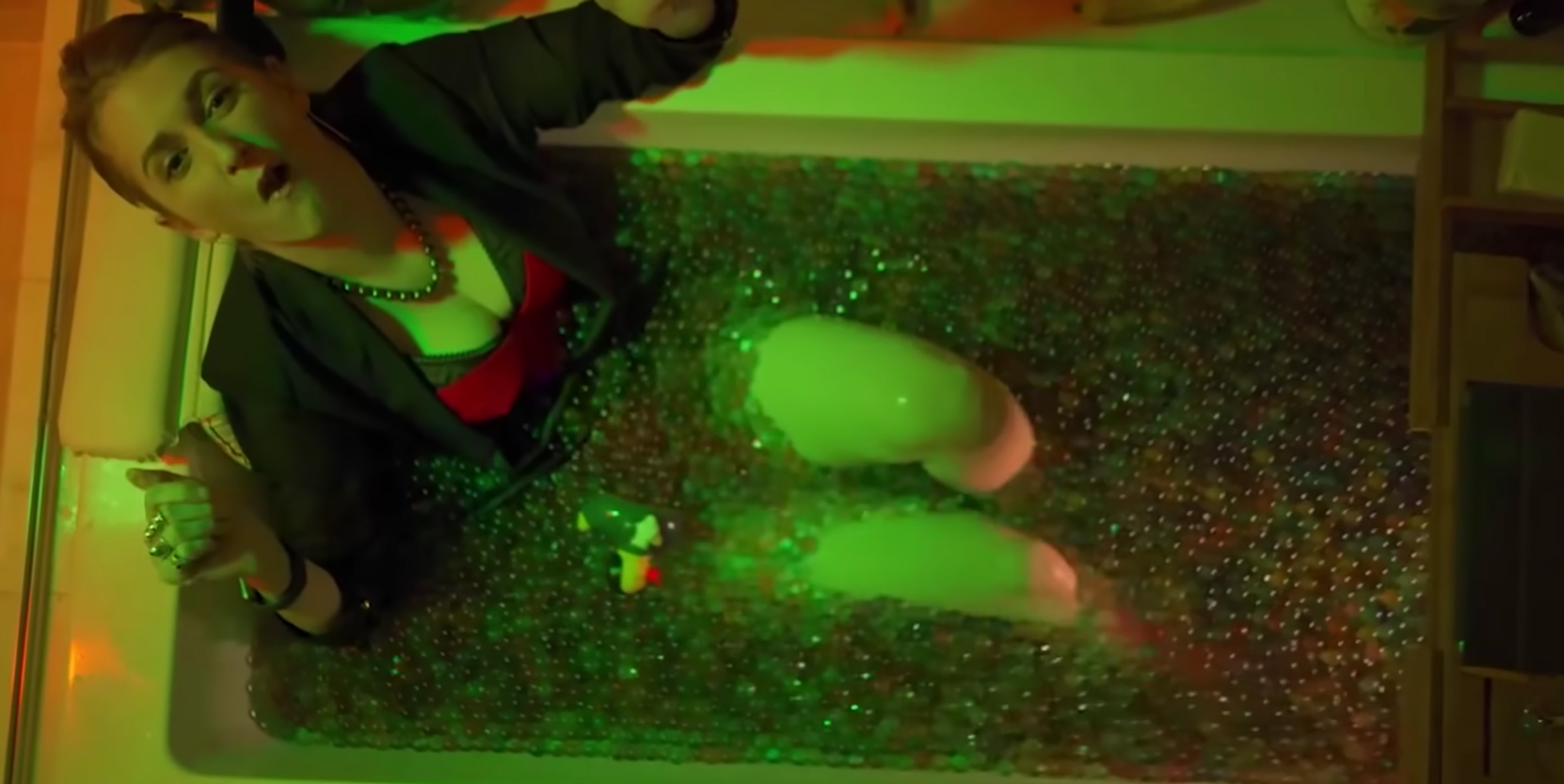 她的歌曲,从 Pho King Badd Bhech 到 Gilfalicious,充满了痛苦的勉强押韵,表达方式如此生硬,让她听起来比 Chet Hanks 还像 Kendrick Lamar。她的歌词毫无意义。在 High in the Cemetery 中,她描述了一个幻觉,她在其中得到了一个神灯,遇见了一个神灯精灵,后者提出要实现她的愿望,作为交换条件要求“手交”。直到后来她才了解到神灯精灵的真实身份:“这不是普通的变态,这是马克·扎克伯格。”