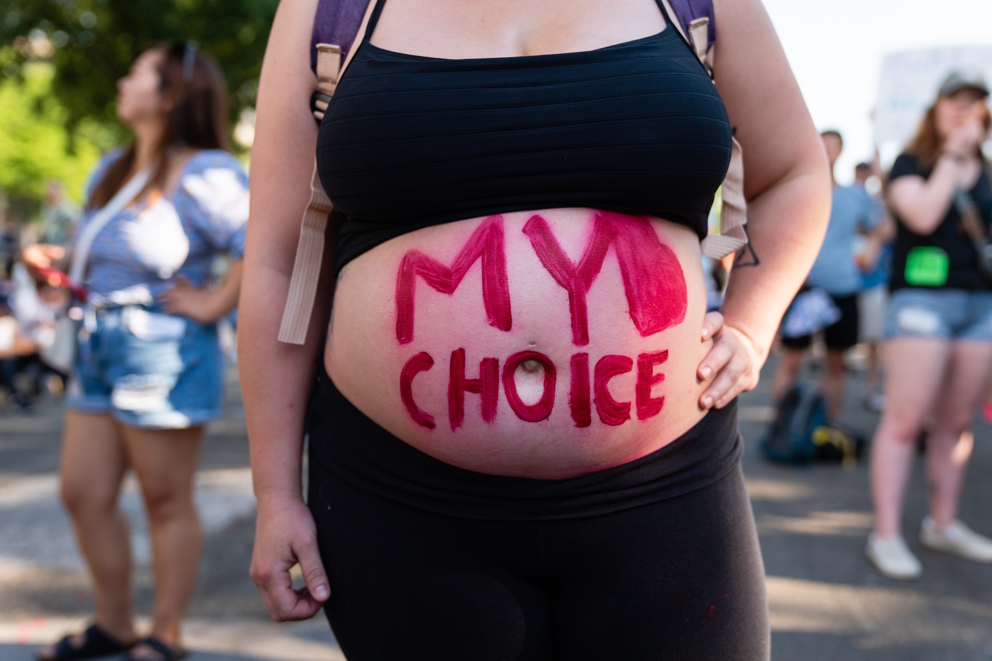 一句口号写在一个支持堕胎权利的示威者身上,在华盛顿特区的美国最高法院外,日期是6月25日。