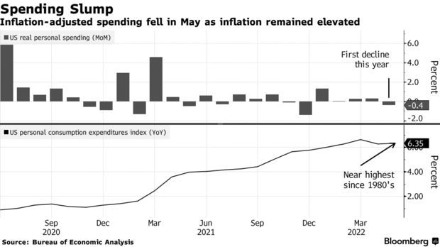- 周四的数据显示,五月份通胀调整后的个人支出首次在今年下降,之前四个月的增长也被修订下调。
