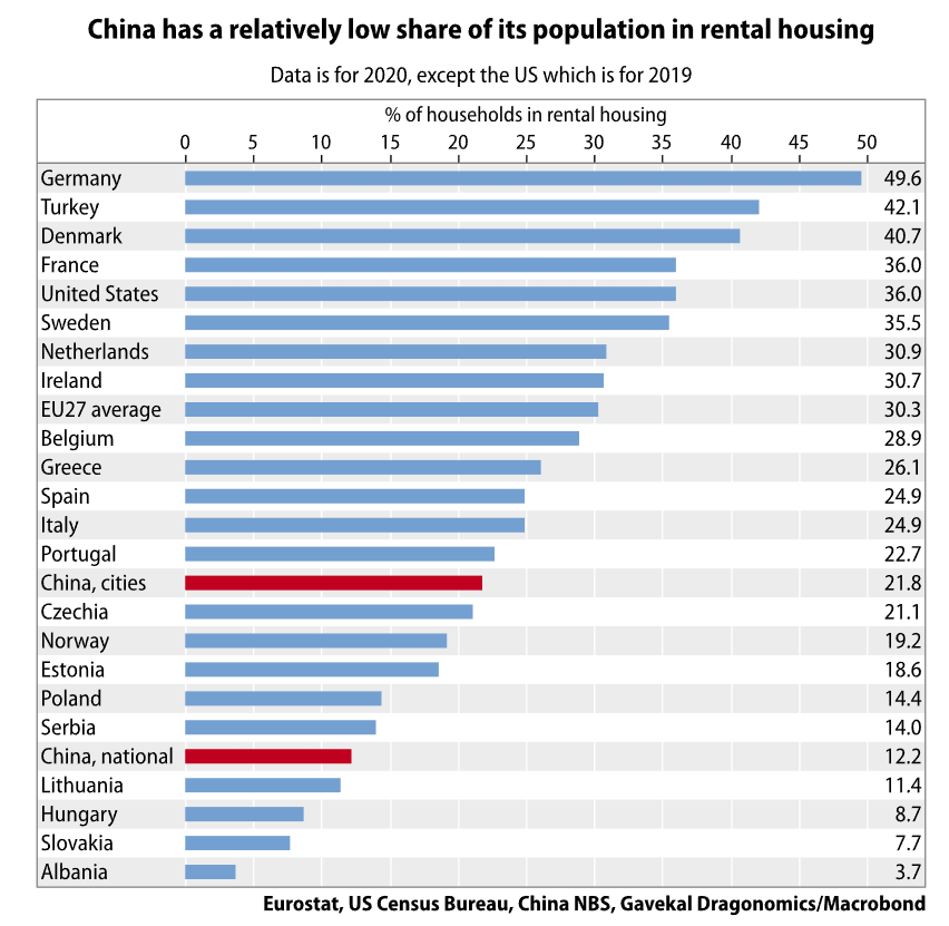 部分动机是为了避免之前为振兴房地产市场而采取的措施导致的房价上涨,Yao在最近的一份报告中写道。另一个原因是认识到在中国,租赁在市场中的比重明显较欧洲等地要小。