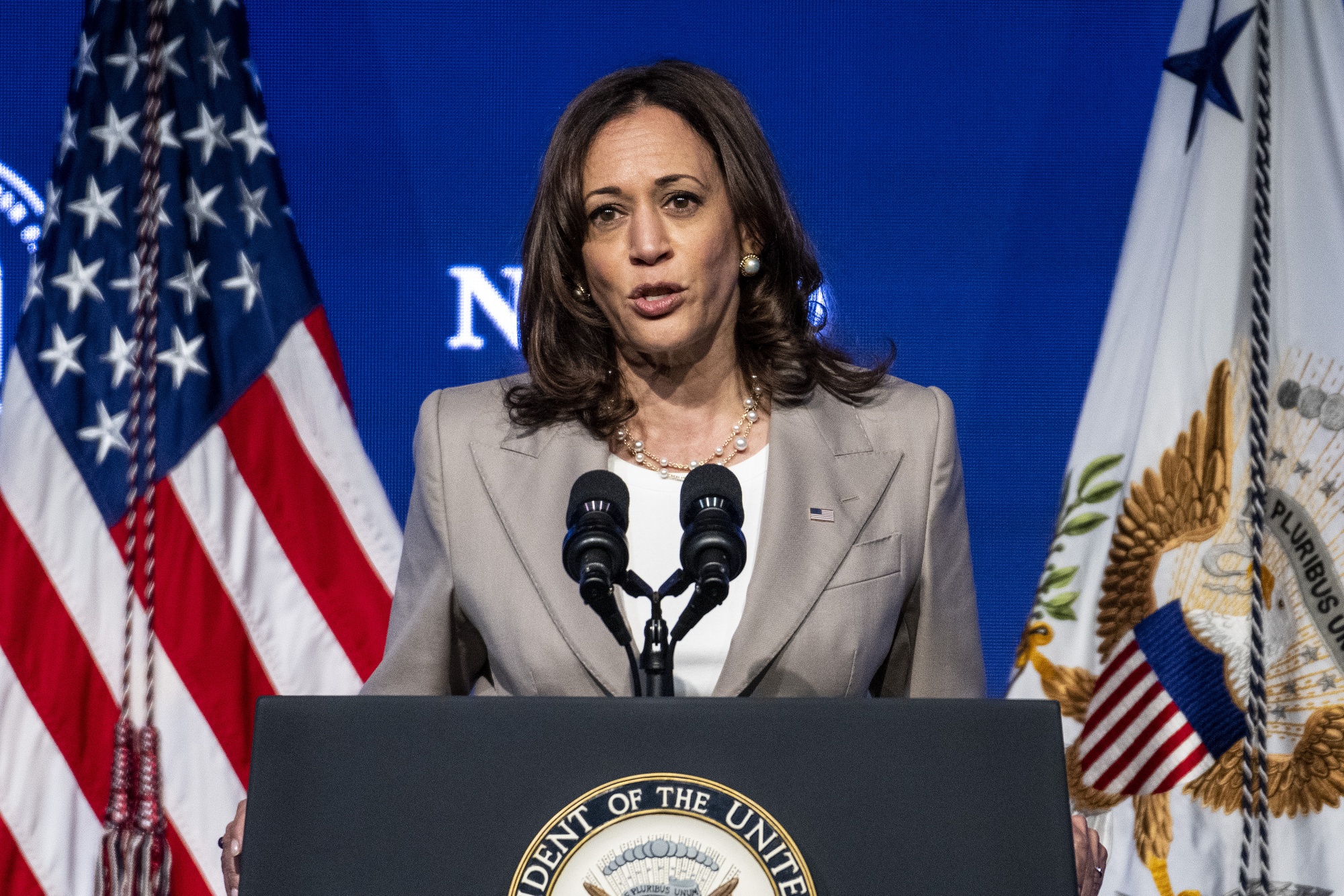 副总统卡玛拉·哈里斯指出禁止堕胎的州和限制选举权的州之间的联系,告诉一群主要由黑人女性组成的观众,废除罗伊诉韦德案需要我们所有人发声。