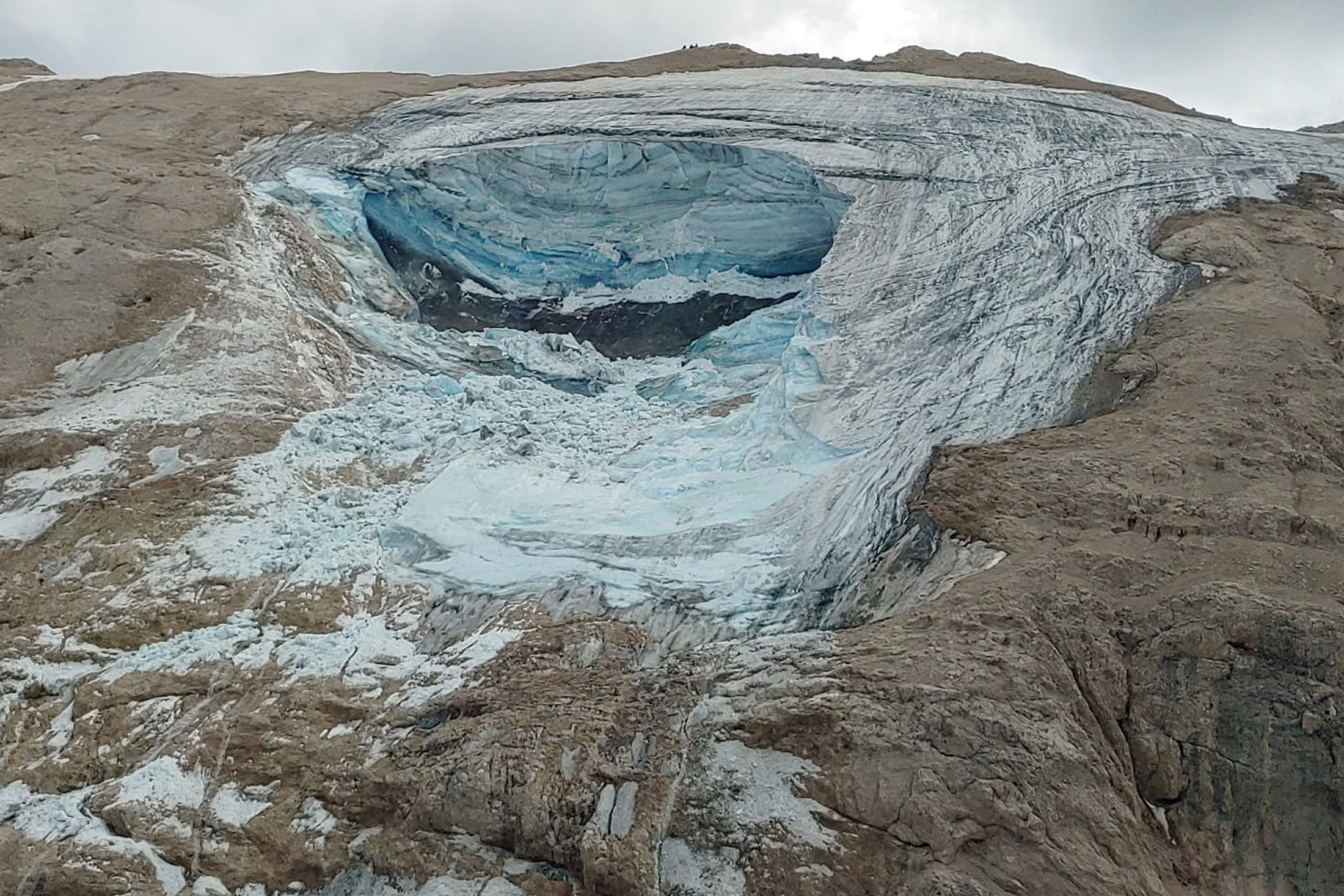 一大块冰川在意大利阿尔卑斯山区特伦托附近的一条受欢迎的小径上崩塌,导致至少六名徒步者丧生,八人受伤。