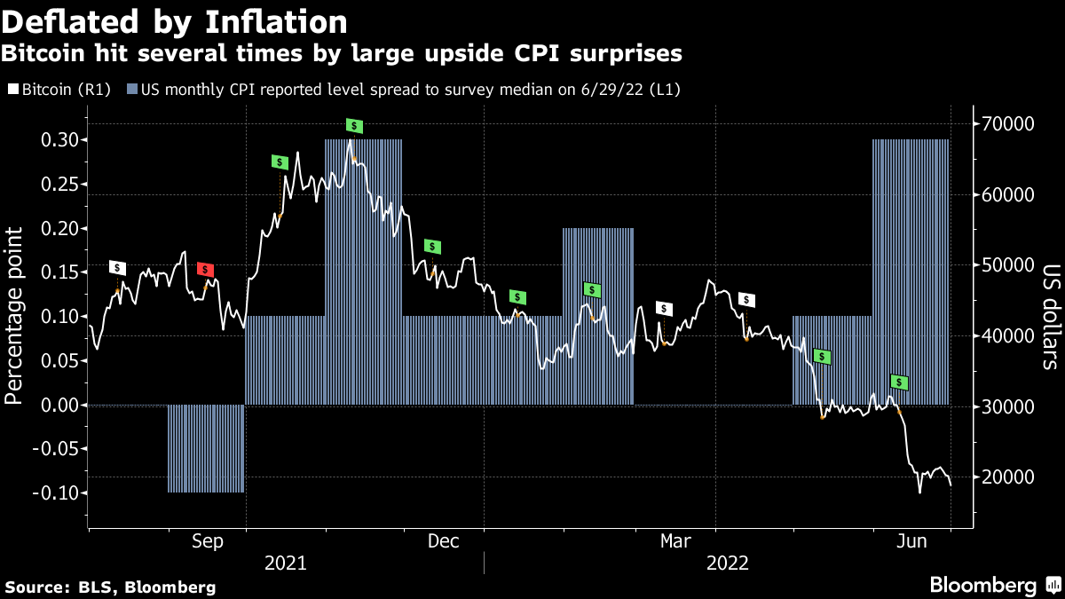 在过去十年中,随着比特币价格的多次飙升到令人瞠目结舌的高度,伴随着的叙事之一是,它和其他加密货币被认为是对抗通货膨胀的绝佳选择。由于比特币的代币数量有限,被称为数字黄金的说法逐渐流行起来。随着通货膨胀在去年飙升,这一主题最初表现得不错,但随着美联储在2021年底删除了“暂时性”这个词,并开始加息,情况发生了变化。果不其然,随着通胀上涨超出预期,比特币在过去几个月里暴跌。这种代币已经在接近20,000美元左右的水平上稳定下来,但随着稳定币受到新的关注,交易中带有一种紧张的氛围。本月晚些时候再次出现高通胀数据很可能会导致比特币下跌,寻找另一个整数关键点。