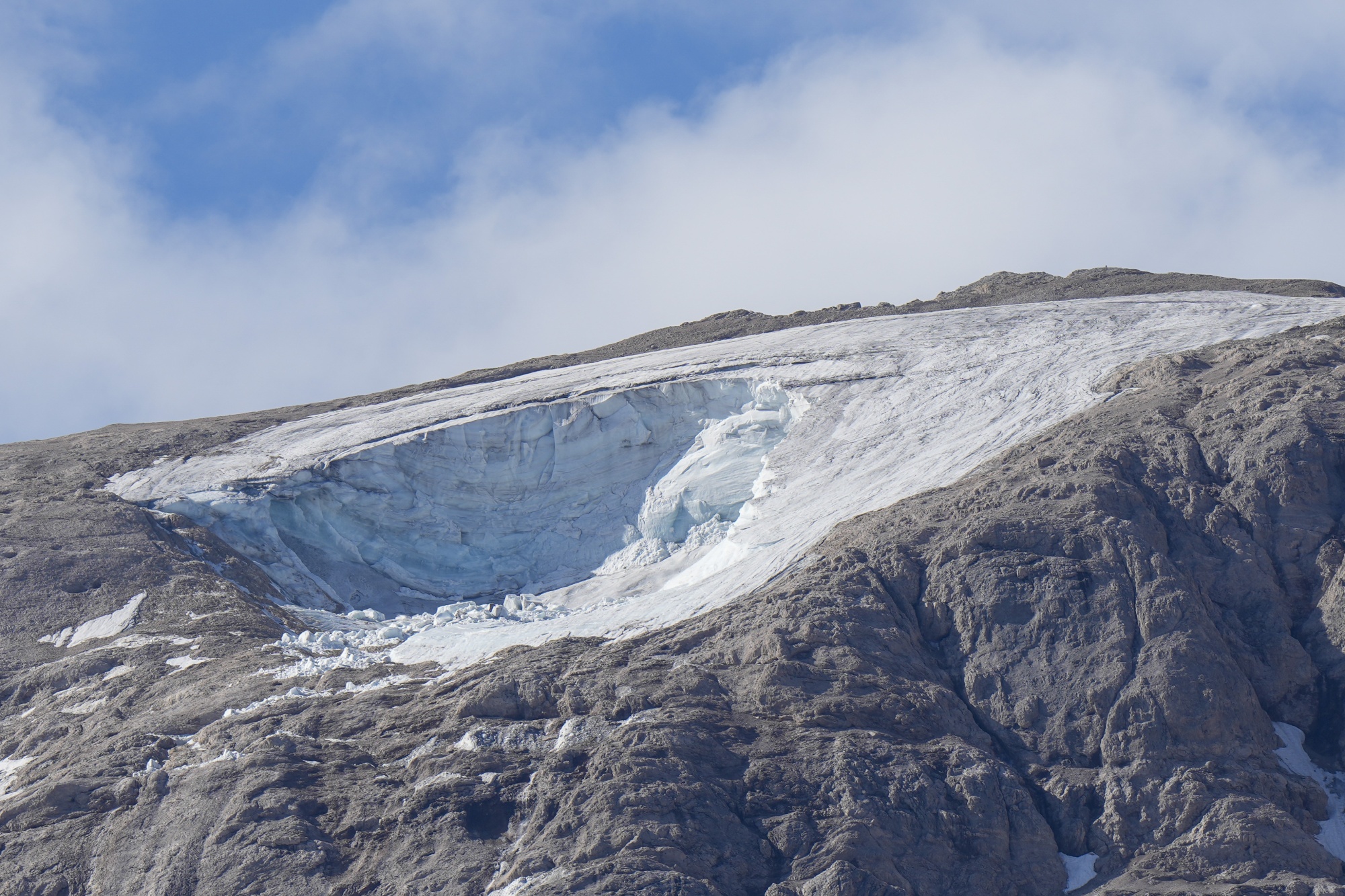 意大利北部意大利阿尔卑斯山的Canazei附近的Punta Rocca冰川景观,2022年7月5日星期二,这是在冰川的一大块巨大冰块脱落后的第二天,将冰雪和岩石的雪崩冲向徒步者。(AP图片/卢卡·布鲁诺)