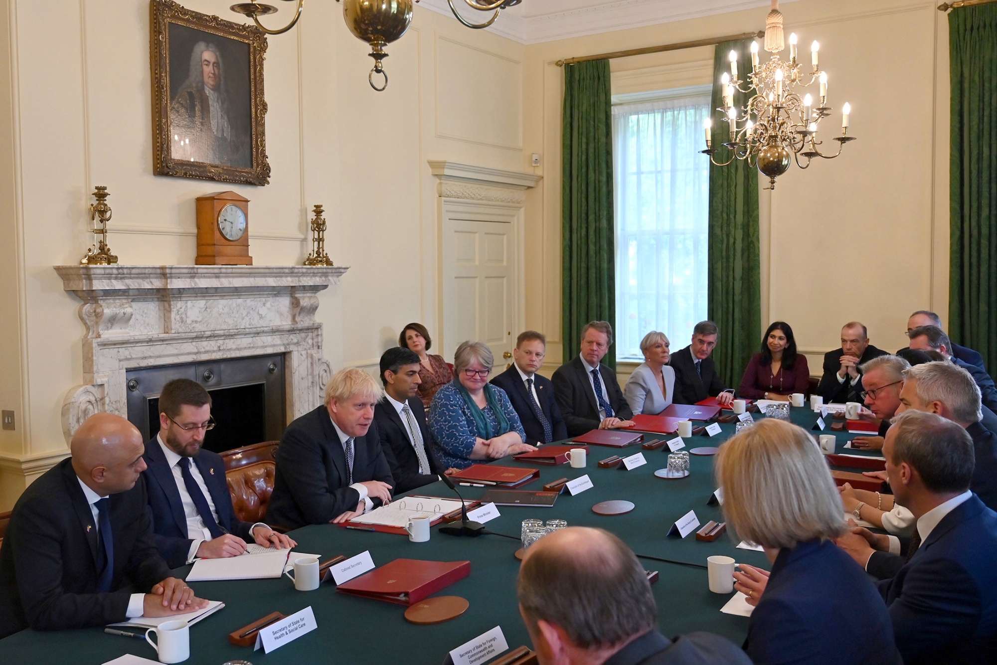 鲍里斯·约翰逊和里什·苏纳克在7月5日的内阁会议上。摄影师:Pool/Getty Images Europe因此,在星期天晚上,约翰逊前往邻居苏纳克在唐宁街11号的公寓,参加他们定期周末晚餐之一。