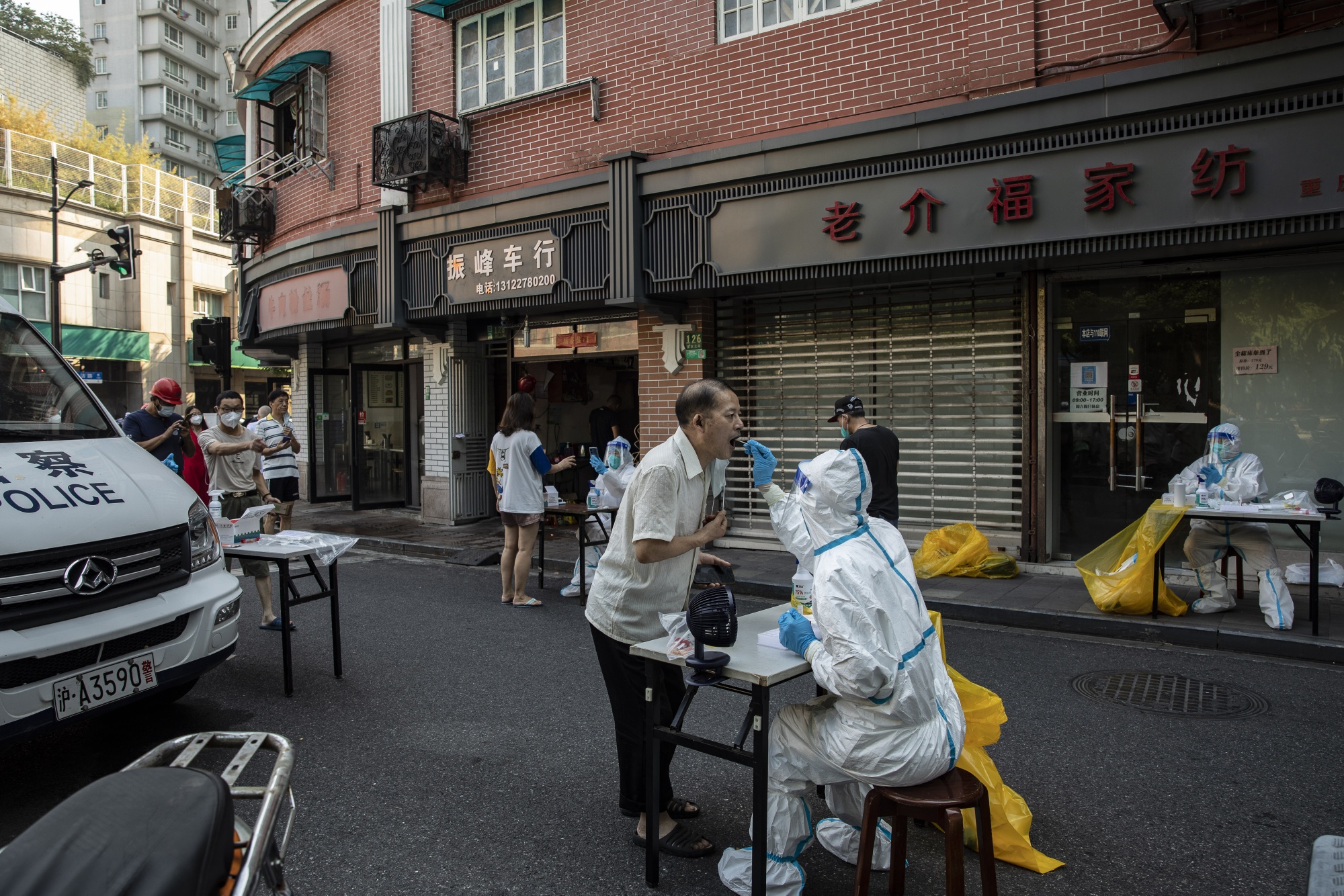 昨天上海居民接受Covid-19检测。摄影师:Qilai Shen/Bloomberg