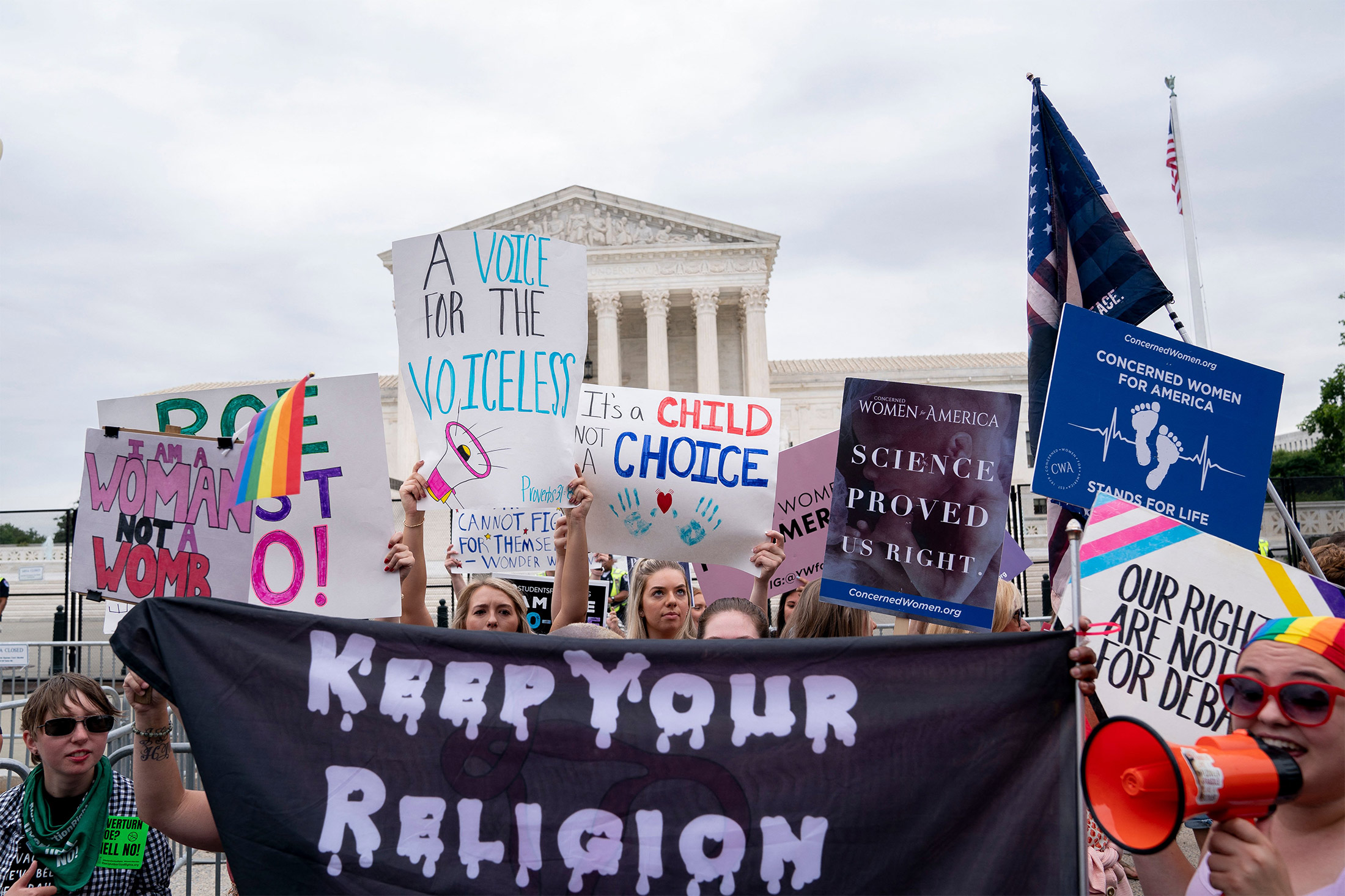 支持堕胎和反堕胎示威者在华盛顿美国最高法院外,于6月21日。