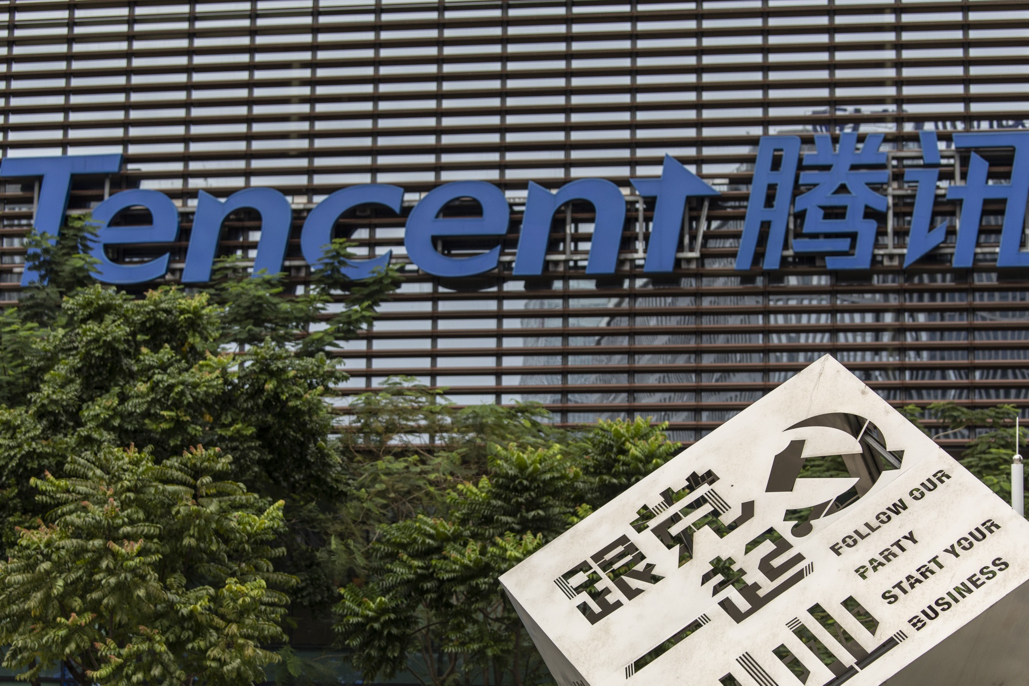 腾讯总部位于中国深圳,2021年10月12日。摄影师:沈其来/彭博社在中国,微信应用几乎主宰着一个人日常在线生活的方方面面 — 银行业务、约会、游戏、音乐、购物、社交媒体。它是最大的社交媒体平台之一,活跃用户数量超过推特和 Snapchat 的总和。随着微信影响力的增长,其母公司腾讯控股有限公司在过去十年里价值和影响力飙升,曾一度位列全球第五大市值公司。腾讯持有特斯拉、Reddit、Snap、Spotify以及一系列全球娱乐品牌的股份。