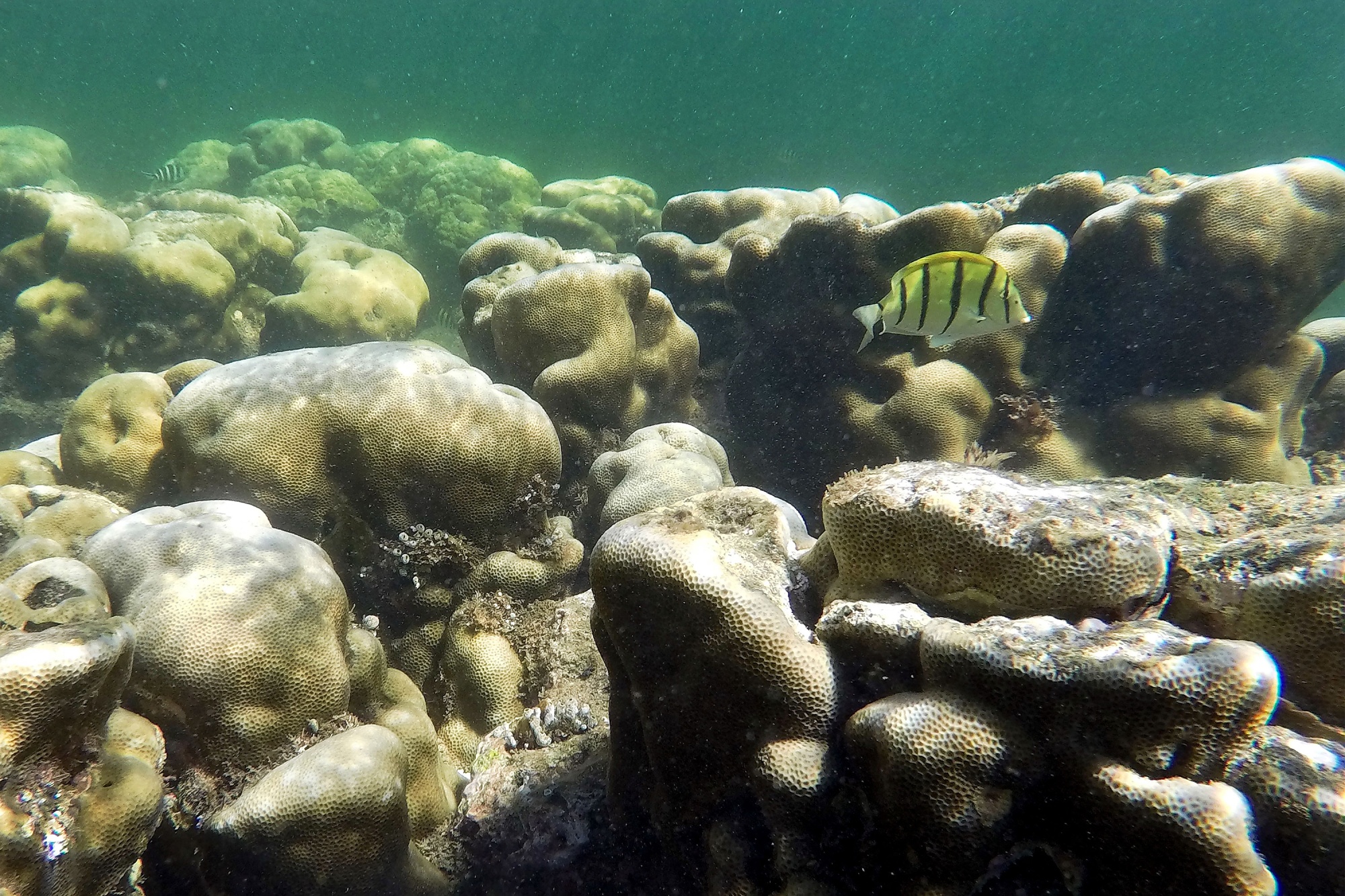 鱼儿在肯尼亚海岸帕特岛附近的珊瑚礁旁游泳。
