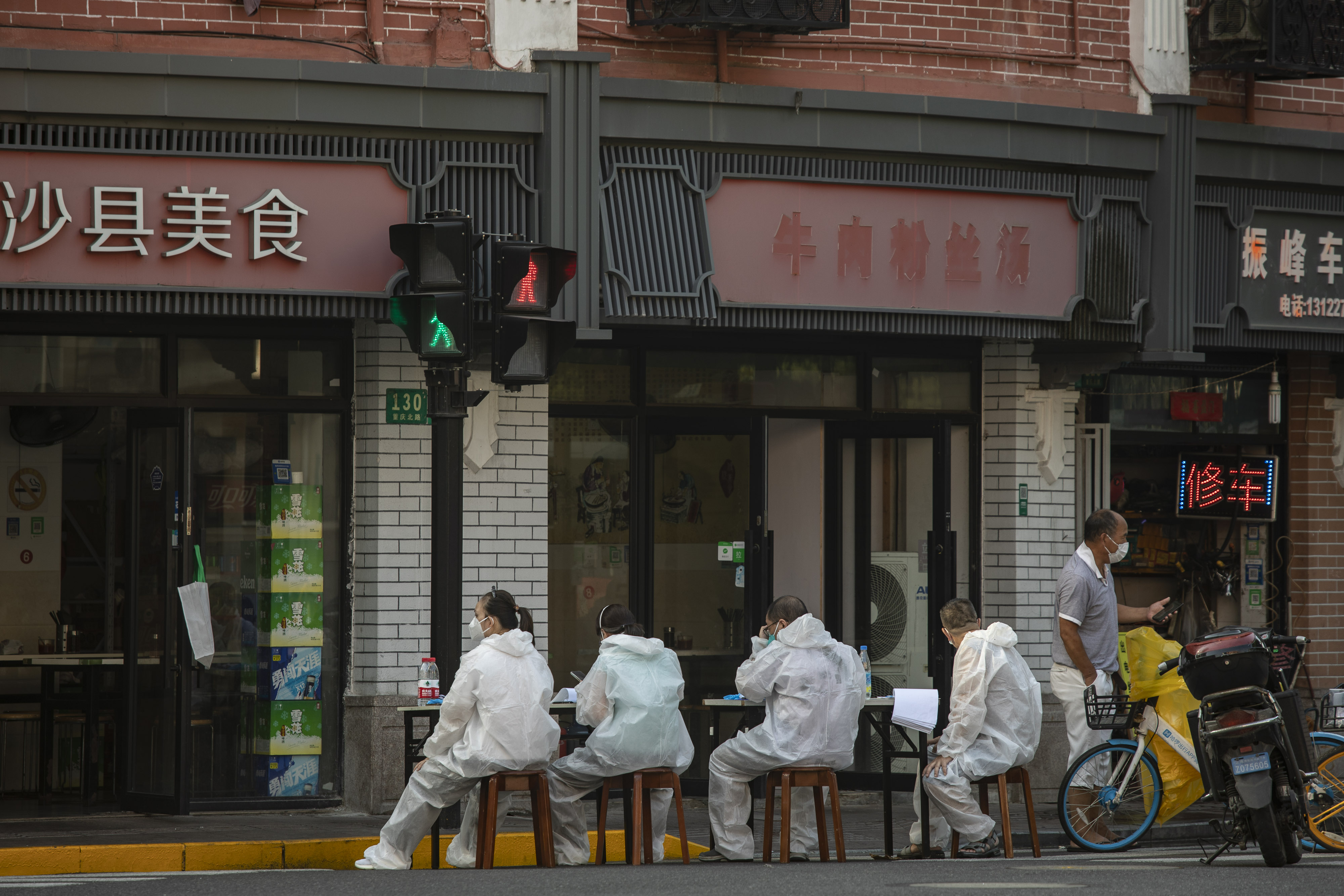 上海的一家新冠病毒检测站。摄影师:沈其来/彭博社