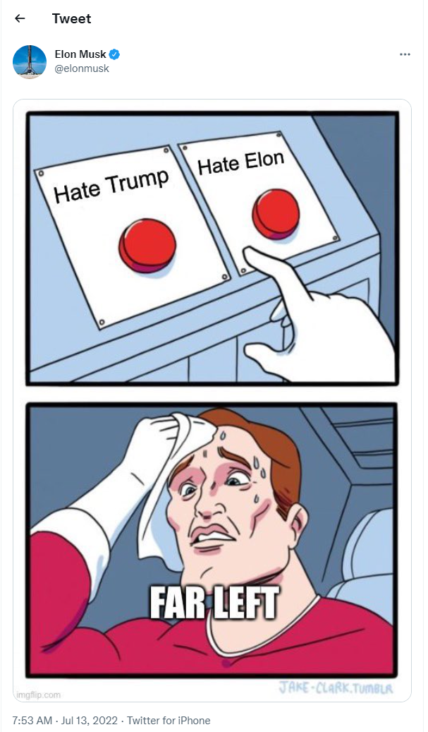 这种责备更加令人恼火,因为它是以同一天Twitter起诉其最著名用户试图退出440亿美元收购交易的方式发出的:在一条随意的推文中。特朗普无法回复推文,因为他已经被禁止使用这个他在任期间运用得非常娴熟的社交媒体工具。