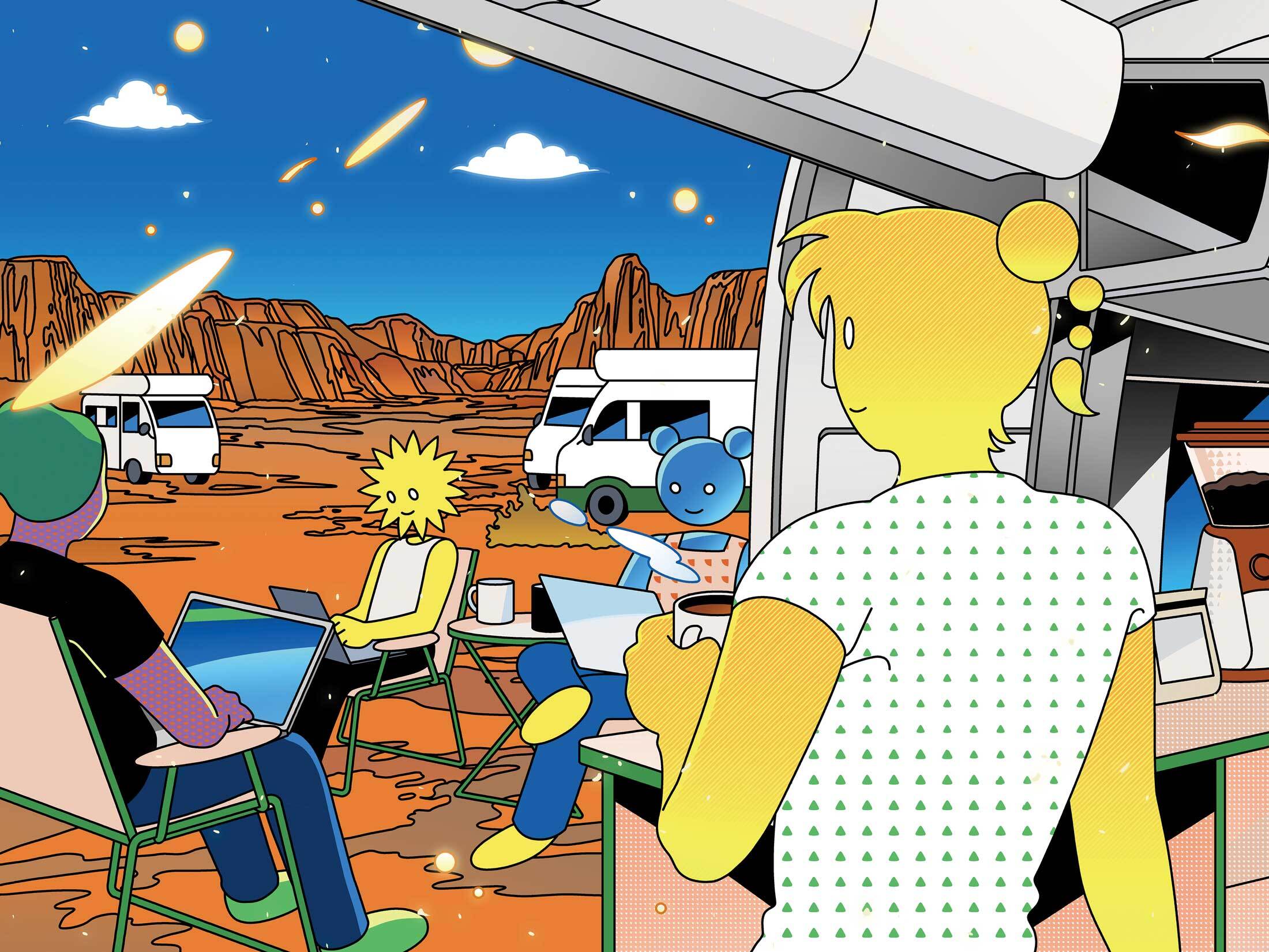 O’Donnell于2019年开始建立Kift,但疫情赋予他的初创企业一支突然脱离办公室的劳动力。Instagram的幻想迅速变成了人生计划。根据咨询公司MBO Partners的数据,现在有超过1500万美国人自称为“数字游牧民”,而疫情前这个数字约为700万。Airbnb上长期预订的每九个人中就有一个将自己的生活方式描述为游牧,而Airbnb公司宣布其6000多名员工永远不需要回到办公室。那些价值5万美元的Sprinter房车已经被预订了几个月,整体美国房车销量保持在历史最高水平。