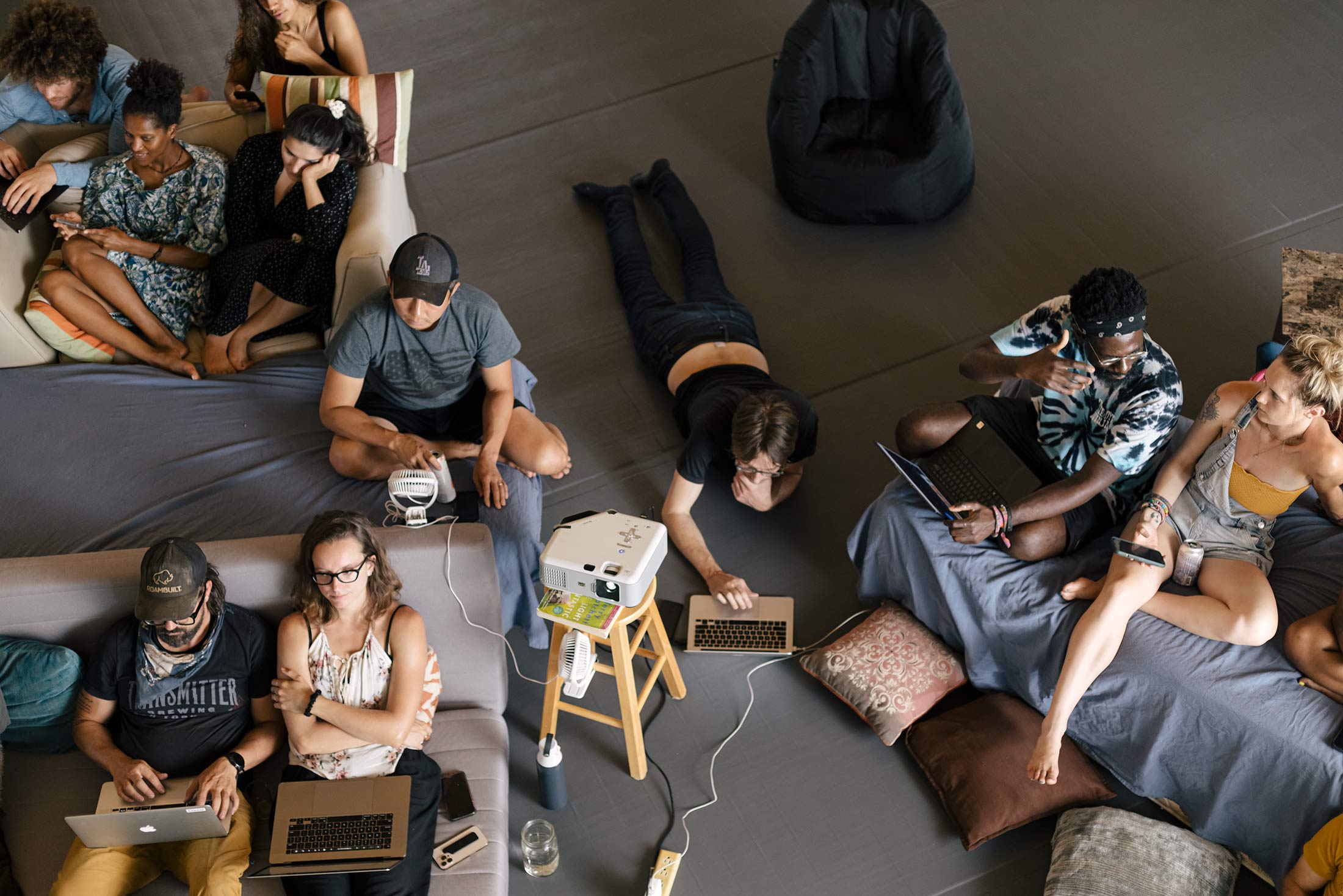 当我抵达约书亚树时,Kift 团队已经建立了一种节奏。公共厨房每天早晨都有咖啡,有时 O’Donnell 会制作一批冰沙。每天早上8点,居民们举行半小时的签到会议,分享他们的感受和当天的通知(垃圾需要清理,稍后会有徒步旅行),然后散开去敲击笔记本电脑或接 Zoom 电话。一些人在房子的两间卧室之一设置了显示器,这些卧室已经改建成共享办公空间。大多数人在那里或在他们的货车里接电话。