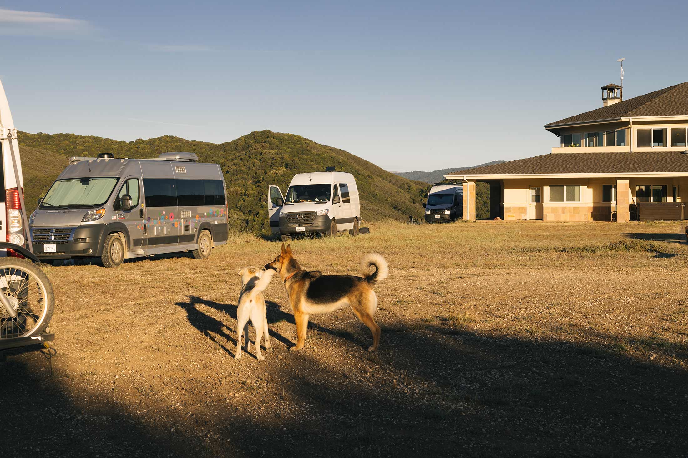为了让新的游牧民更舒适地生活在面包车里,这个地方还设有一组户外淋浴和一个带有几个厕所的独立浴室。下午,法国电子商务设计师乔伊·里帕特(Joy Ripart)自愿教授瑜伽课,或者科技工作者大卫·克纳普(David Knapp)进行塔巴塔训练课程。每个人都在厨房的白板上报名参加晚餐烹饪轮班。所有的餐点都是由植物制成,杂货是在线订购送货上门的。团队计划在国家公园进行日出徒步旅行,并为下午的冰浴冻结了加仑大小的冰块。在那个星期一的每周家庭会议晚餐上,奥唐奈(O’Donnell)带领团队进行“清理”,这是他在阿加佩学到的一个框架,用于表达小的不满而不进行指责。在我参加的那次会议上,有人说他们担心成员可能会因为想吃肉或奶制品而感到受到评判。