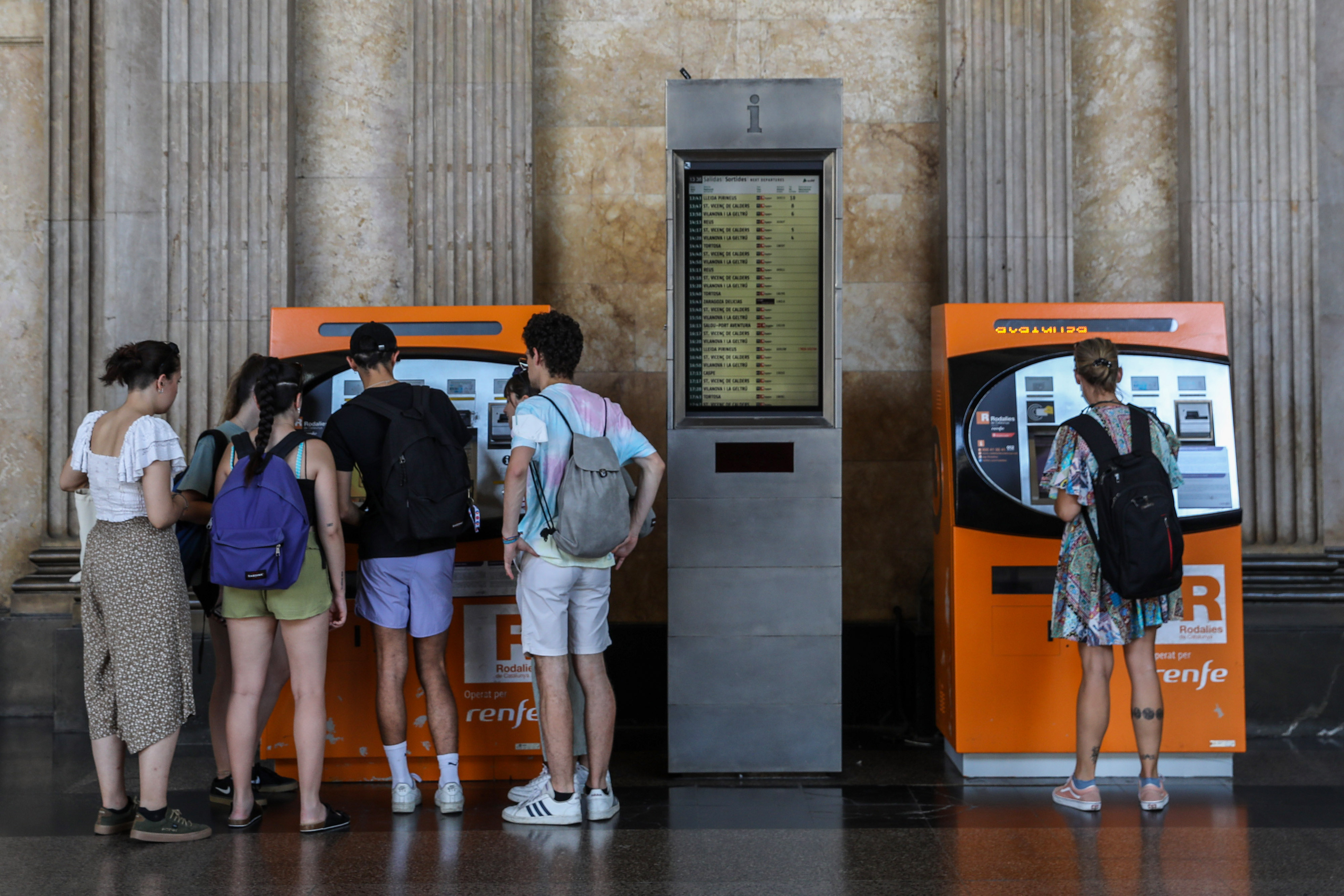 7月15日,巴塞罗那的弗兰卡火车站内的自助售票机。摄影师:安赫尔·加西亚/彭博社该政策的明确目标可能是宣传更可持续的交通方式的好处,但它也旨在在西班牙特别严重感受到生活成本危机的情况下减少汽车使用。
