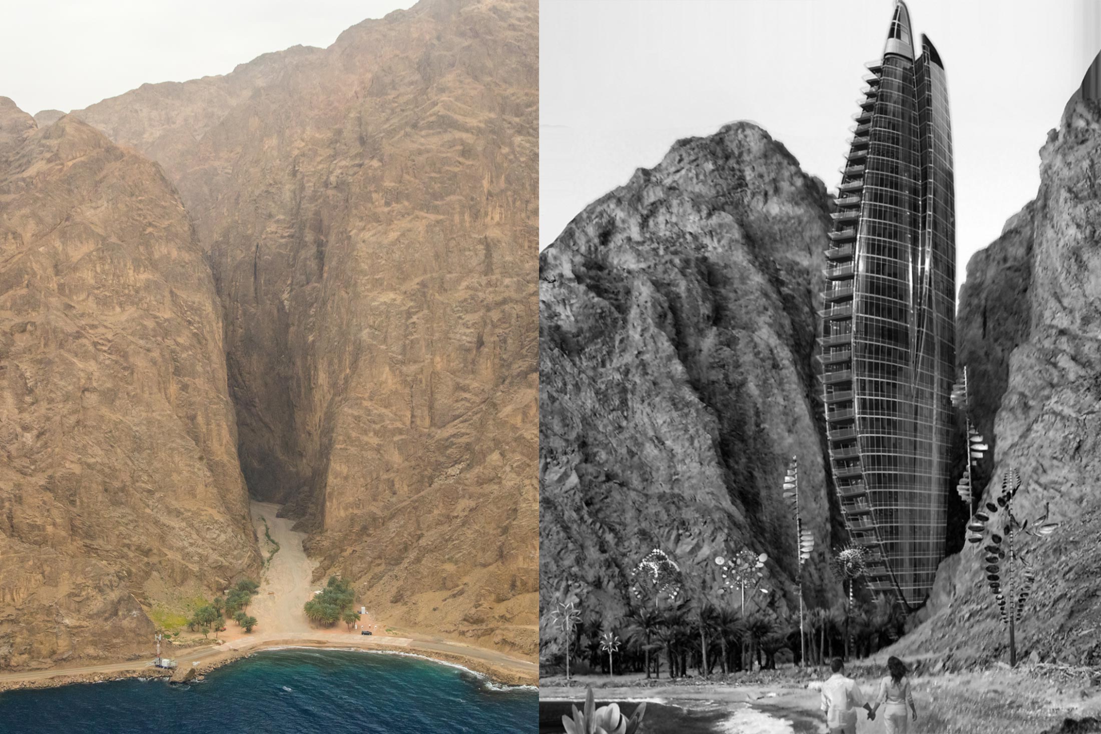 Neom山谷中Wadi酒店的概念渲染图。摄影师:Iman Al-Dabbagh