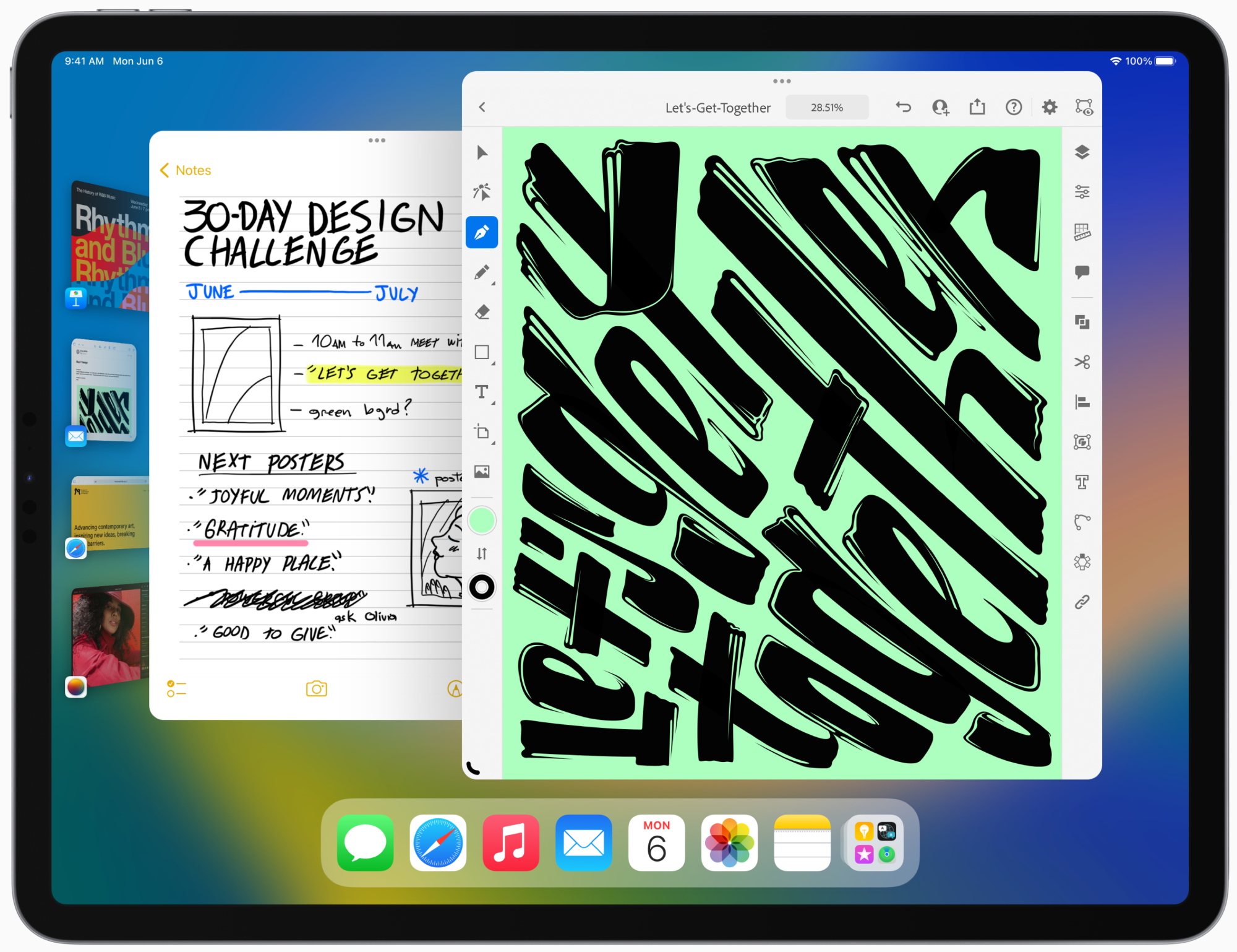对于那些不熟悉的人来说,舞台经理的工作方式是这样的:屏幕的左侧显示您打开的应用程序中最近的一个,您可以通过它们进行切换,使其中一个成为前台应用程序。您还可以拖动其他窗口到屏幕上,同时处理多个应用程序——这对于iPad来说是第一次。