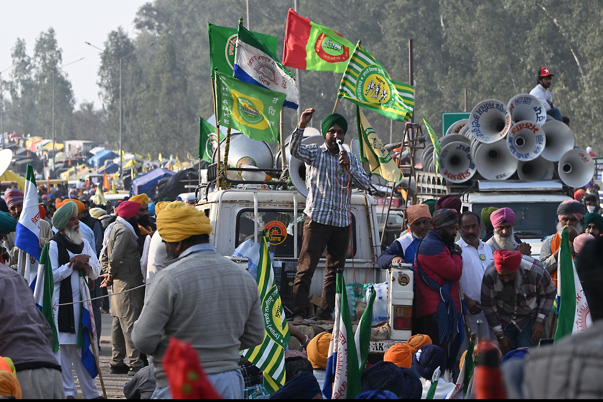 自2月12日以来,农民一直在旁遮普-哈里亚纳邦边境集结,被警方用铁丝网和金属障碍物阻止向德里进军。催泪瓦斯和水炮被用来驱散人群。