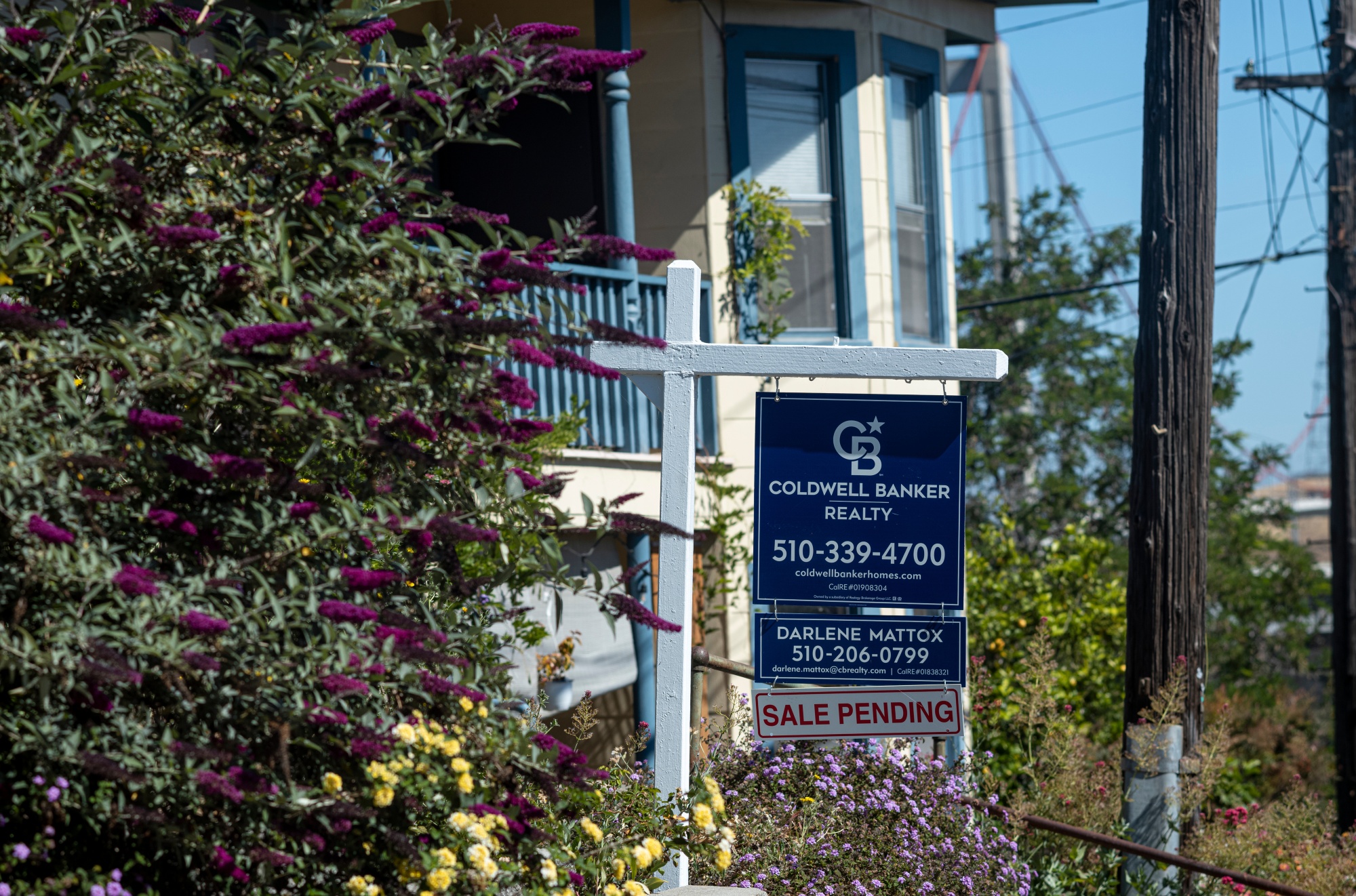 一家位于美国加利福尼亚州克罗凯特的房屋外挂着“待售”标志。