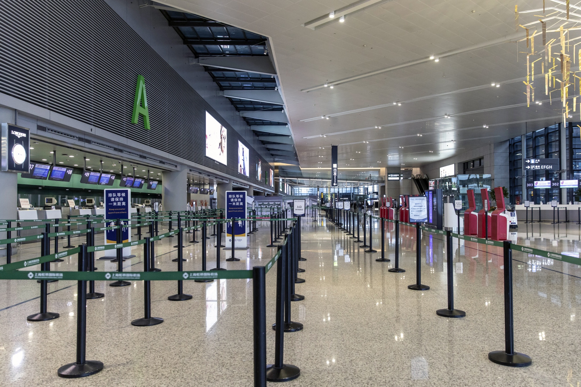上海主要机场的空荡的办理登机区。摄影师:Qilai Shen/Bloomberg和中国数千名富人一样,上海餐厅老板胡哈里正在计划做一件他曾经认为不可思议的事情:将自己和他的资金转移出国。